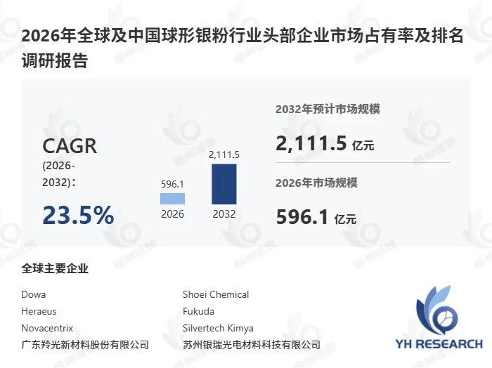 以下内容来自恒州诚思YHResearch出版的《2026年全球及中国球形银粉行业头部企业市场占有率及排名调研报告》,同时提供英文,日文,韩文等不同语种版本报告。