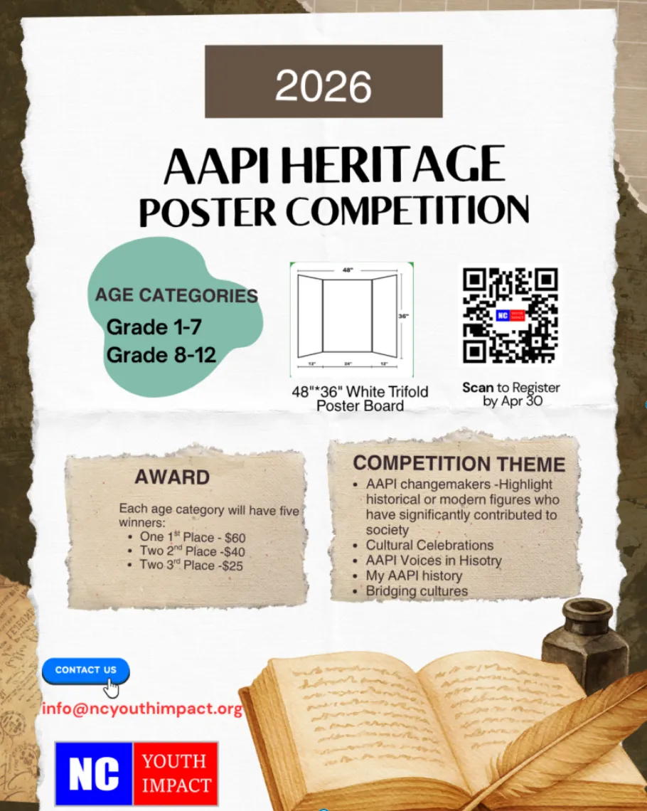 在去年活动取得圆满成功的基础上,2026年亚太裔文化传承海报比赛与美国亚太裔历史展览将再度启航,诚邀广大青少年积极参与,共同探索与呈现丰富多彩的亚太裔历史。