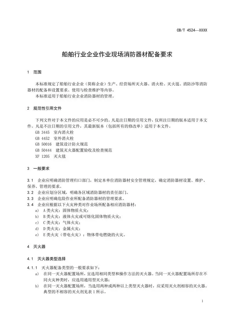 《船舶行业企业作业现场消防器材配备要求》CB/T 4524-2022
