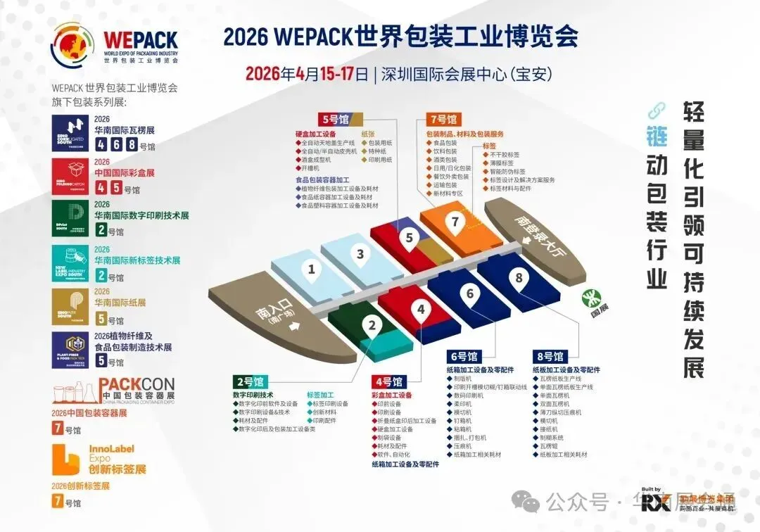 作为透视全球包装行业发展格局,洞见行业发展新趋势的业界盛会,WEPACK世界包装工业博览会旗下包装系列展之一2026华南国际纸展将于2026年4月15-17日在深圳国际会展中心(宝安)举办。