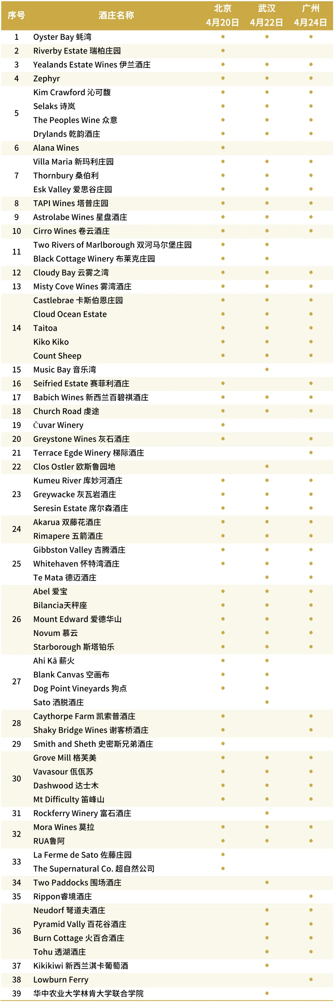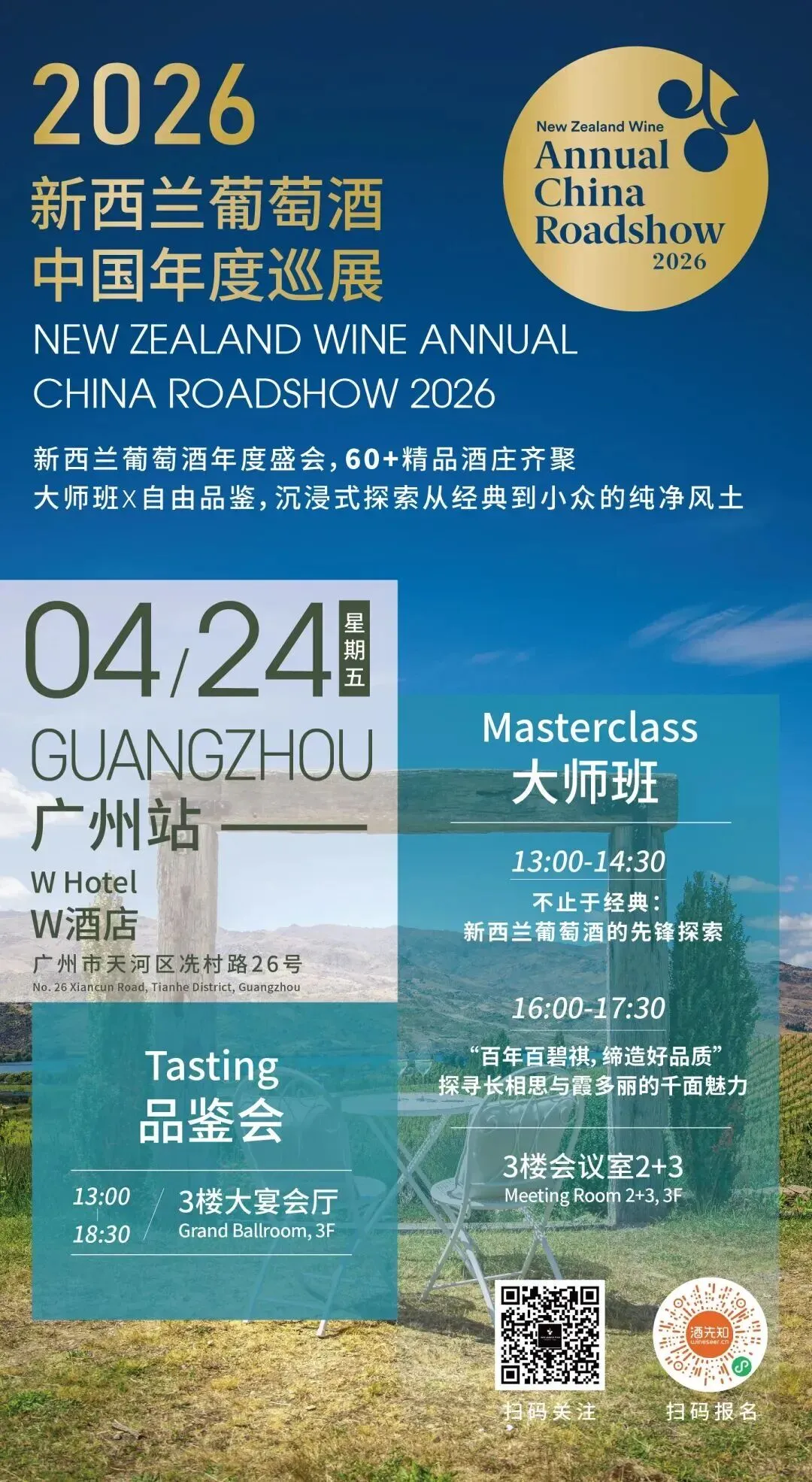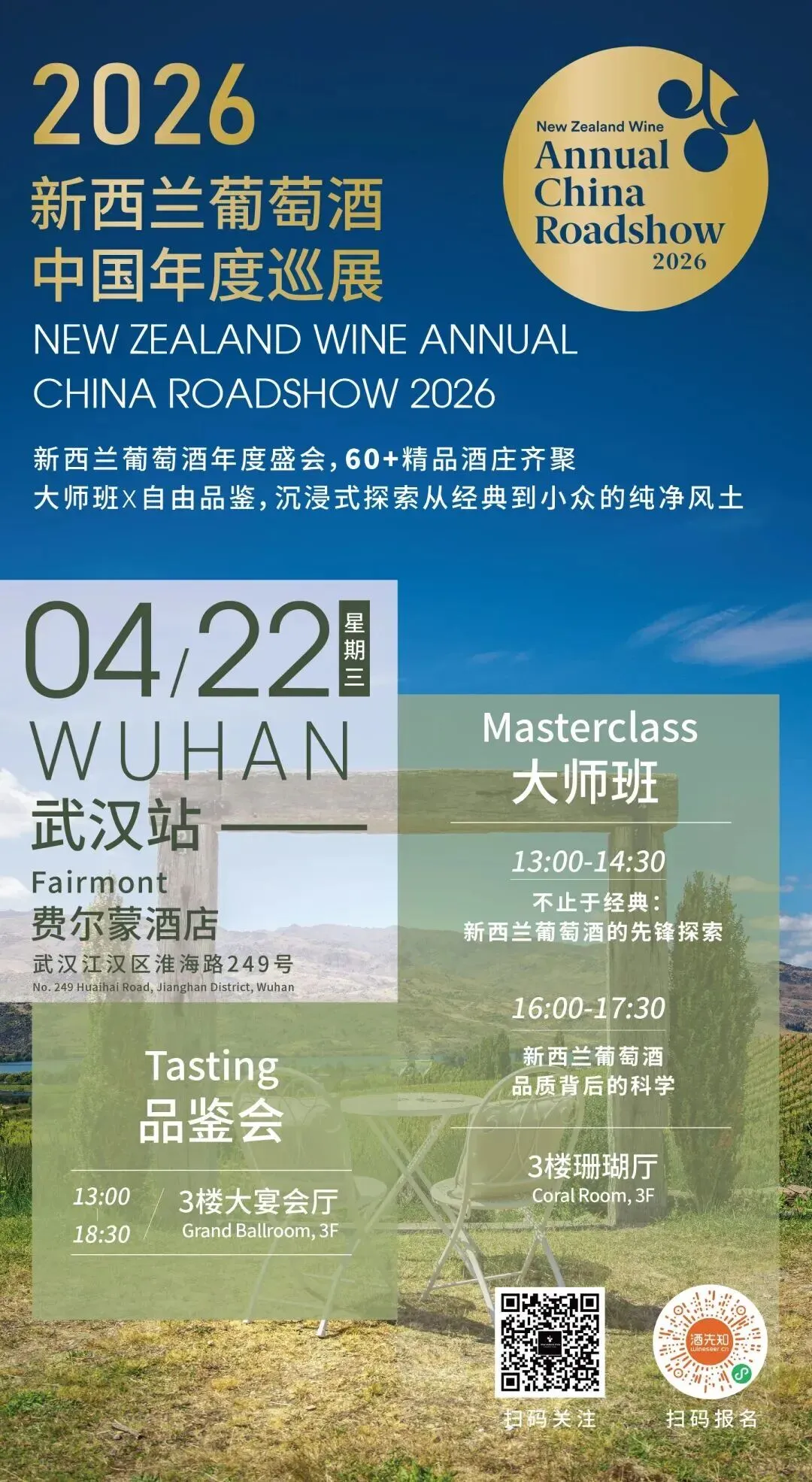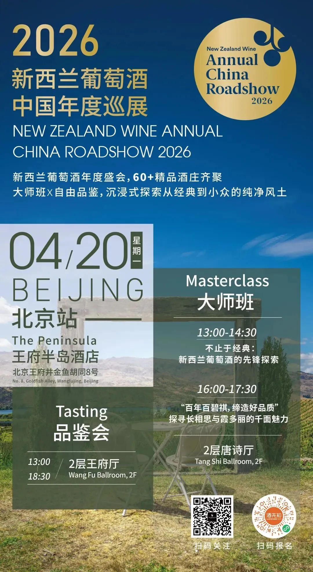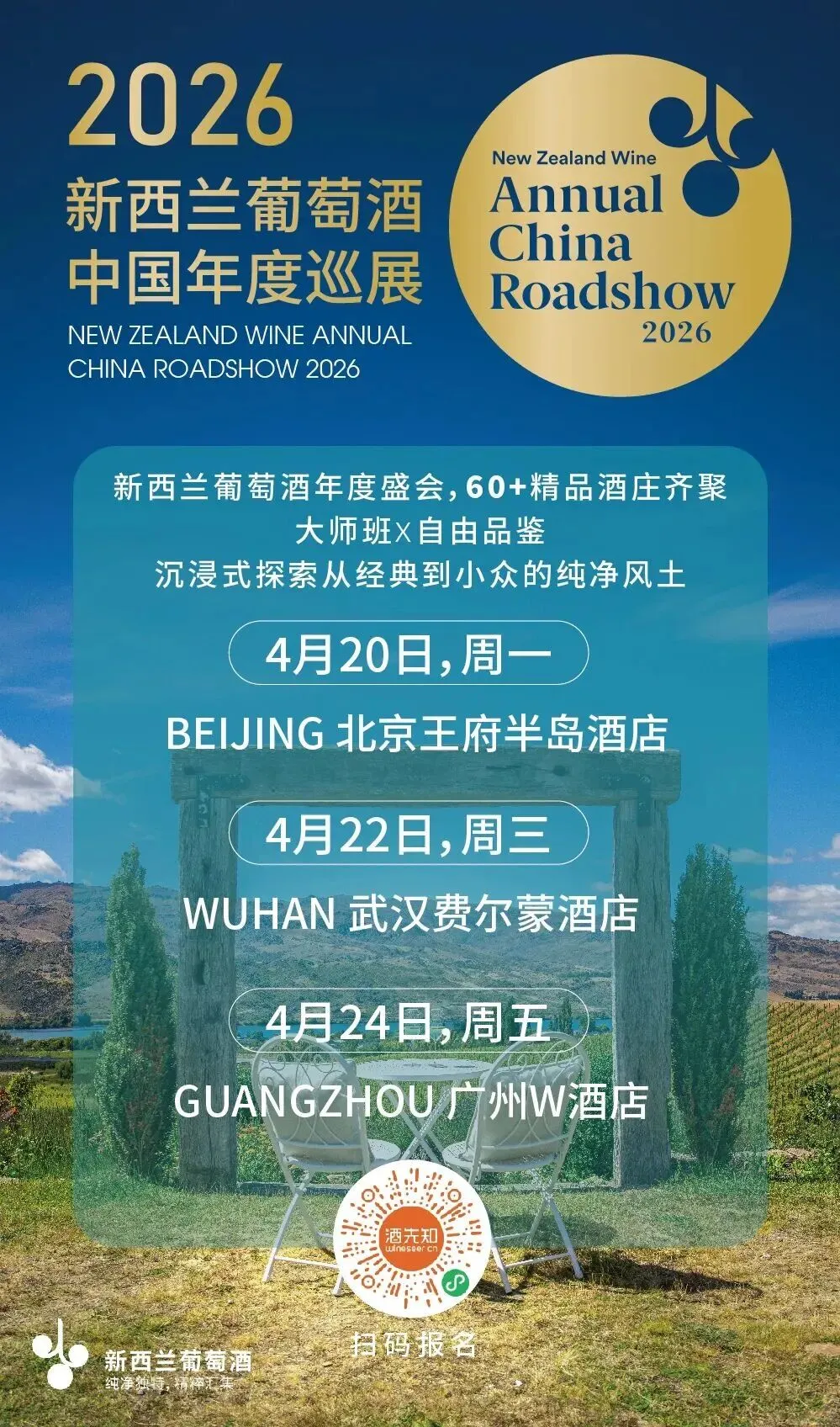 本次新西兰葡萄酒年度巡展,共三站,北京4月20日、武汉4月22日和广州4月24日。
