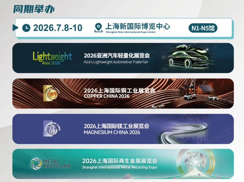 新能源汽车等战略性新兴产业,正成为拉动材料消费与技术升级的新动力。下游产业对材料多元化、解决方案集成化需求迫切,单一展会难满足行业发展。为此,本届展战略升级,以“五展同期”模式,融合铝、铜、镁等工业展及汽车轻量化、再生金属展,打造综合商贸平台,提供多元材料与一体化工艺方案。