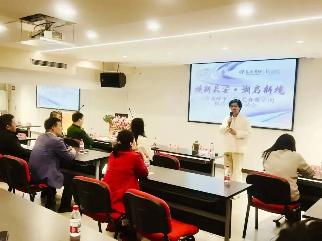 近日,焕新长安·潮启新境——长安商场G层新鲜市、B1层食集空间招商合作启动会在长安商场B1层多功能厅圆满举行。王府井集团北京长安商场有限责任公司党总支书记、总经理李春晖,王府井集团股份有限公司筹划招商中心总经理助理张媚等管理团队,与数十家意向品牌供应商出席会议,共话社区商业新机遇,共谋空间升级新蓝图。