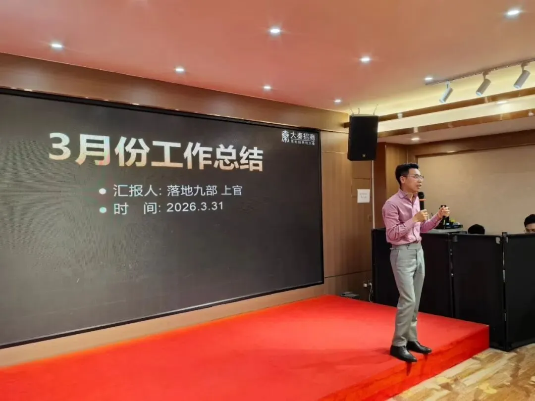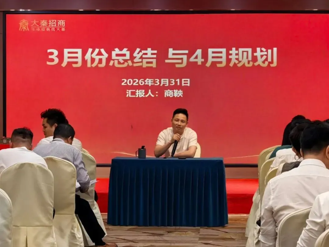 2026年3月31日,大秦招商3月份总结大会在总部隆重召开,大秦全体战神齐聚一堂,复盘月度工作、凝聚奋进力量。
