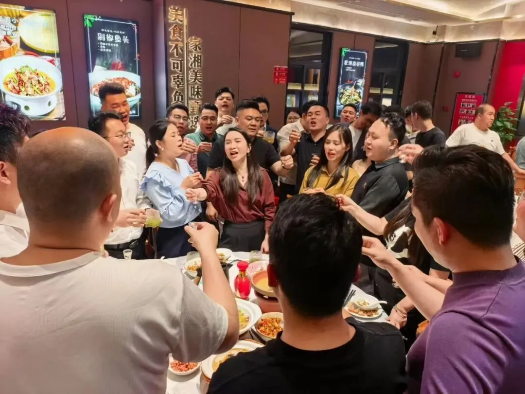 3月份落地老师接风宴,商鞅老师向全体伙伴敬酒,感谢大家的辛苦付出。