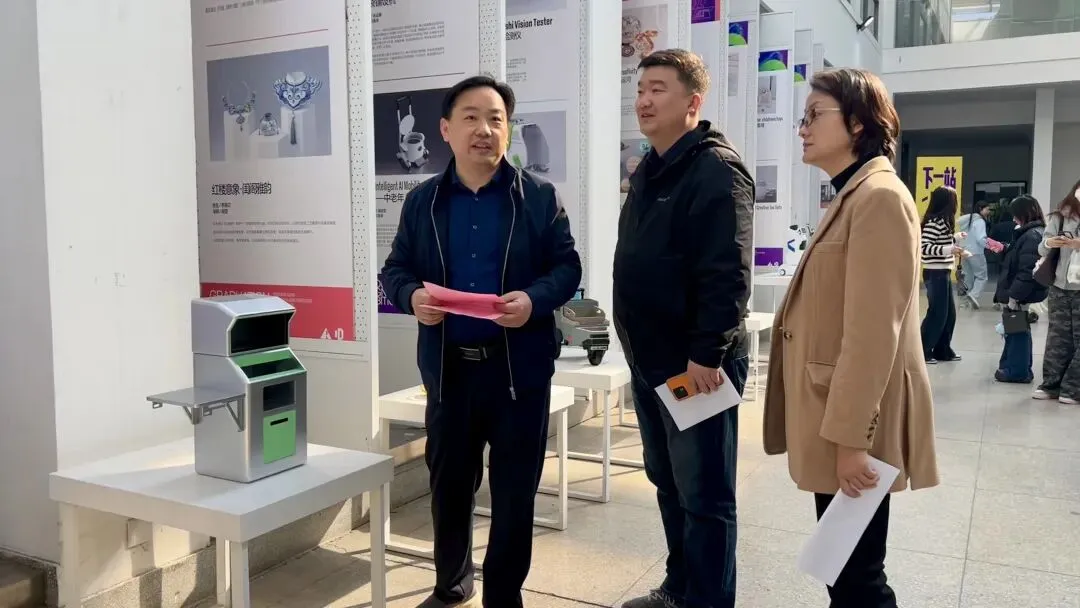 李程院长随后致辞,详细汇报了本届毕业设计的整体情况。本次展览汇聚了产品艺术设计、艺术设计、家具艺术设计、皮具艺术设计四个专业共155件(套)作品。从“空水协同智能救生设备”到“智能枇杷采摘养护设备设计”,从“驿站分拣消毒机器人”到融合传统榫卯与现代审美的明式家具,每一件作品都精准对接了长三角产业需求与社会痛点。李程表示,这些作品是同学们在求学路上最真实的注脚,凝聚着无数个日夜的思考、试错与突破,展现了同学们从懵懂走向成熟、从模仿走向创新的蜕变。