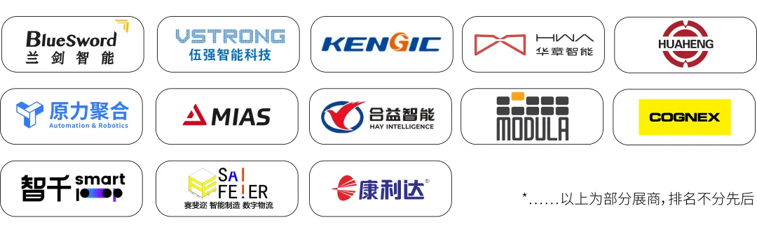 兰剑智能、伍强智能科技、科捷智能、华章智能、华恒机器人、原力聚合(重庆)机器人、米亚斯、摩登纳、康耐视、合益智能、赛斐迩、智千智能、康利达……