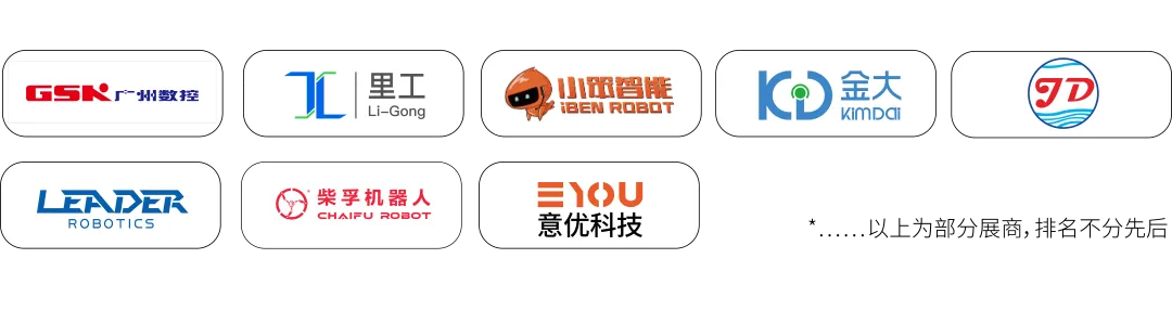 广州数控、广州里工实业、慧闻科技(小笨智能)、立达机器人、金大智能、江达潜水疏浚、柴孚机器人、意优机器人……