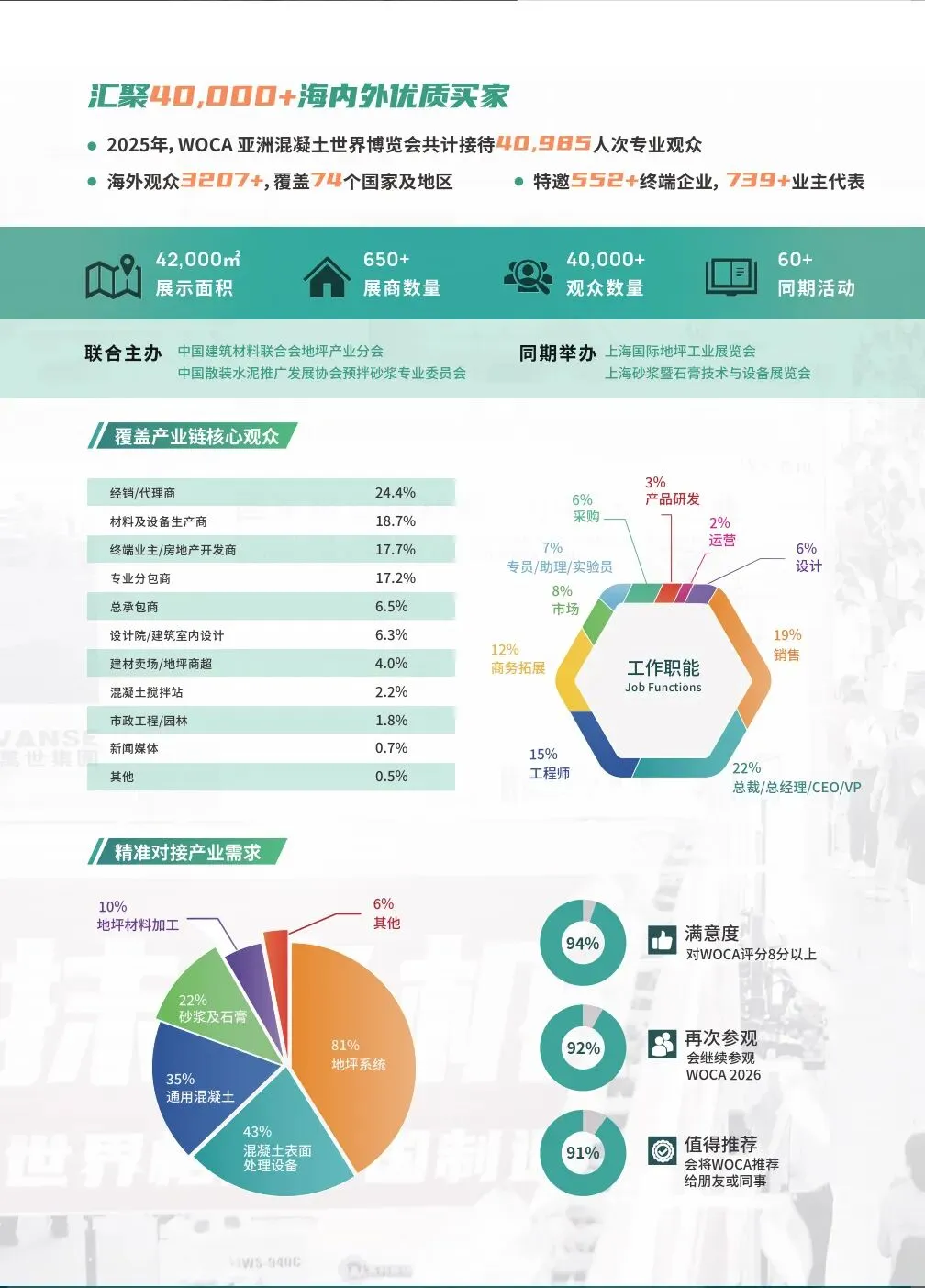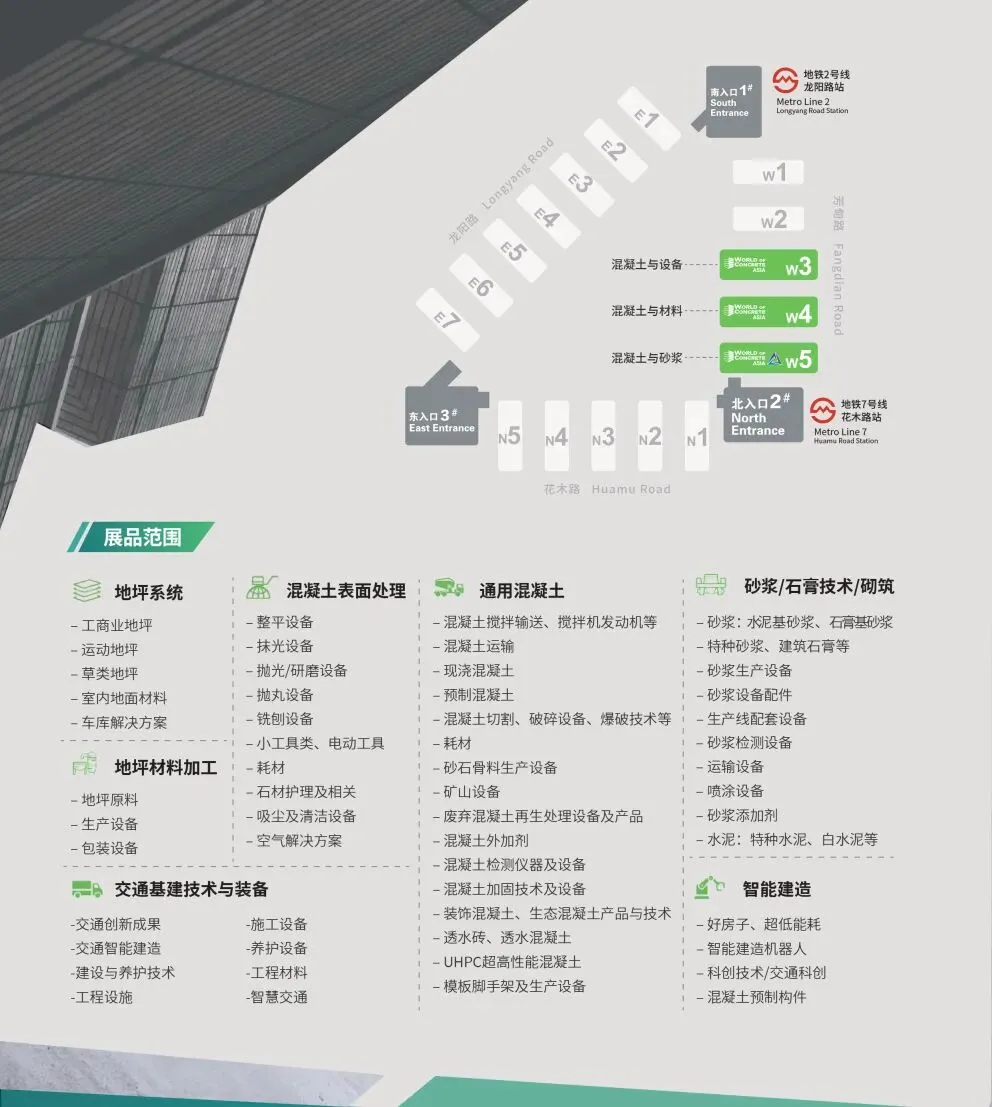 展会日期: 2026年8月12-14日展会地点: 中国·上海新国际博览中心,上海市浦东新区龙阳路2345号面积42,000㎡、展商650+、观众40,000+为何参观&为何参观?混凝土、地坪、砂浆全球一站式商贸采购平台参展咨询:17891911768