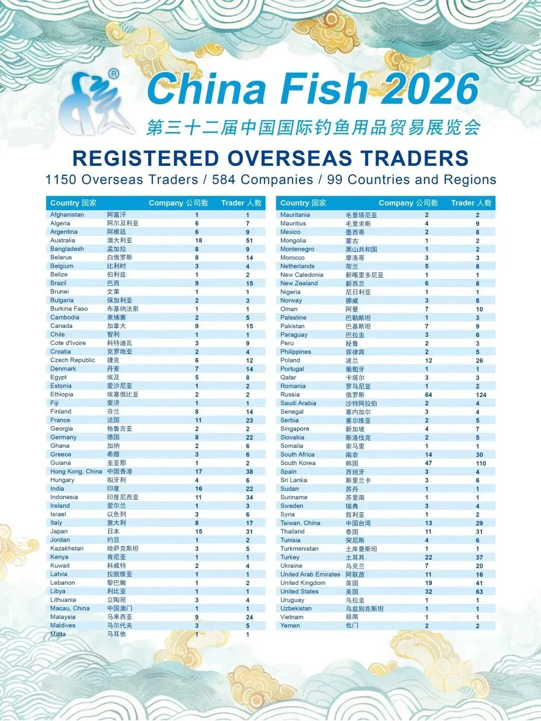 2026 年 2 月 28 日至 3 月 2 日,第三十二届中国国际钓鱼用品贸易展览会(ChinaFish2026)在中国国际展览中心(顺义馆)成功举办。作为全球三大顶尖渔具专业展会之一,本届展会展出面积达 40000 平方米,设置标准展位 1804 个,吸引 707 家境内外企业参展,汇聚 1150 名海外采购商与 759 名国内采购商,为全球渔具产业搭建了高效的商贸对接与交流平台。