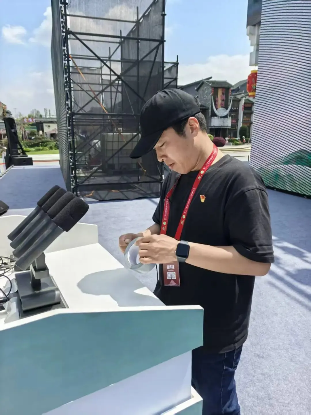 烈日下,技术党员反复调试设备、排查线路,确保音视频零失误、零差错;
