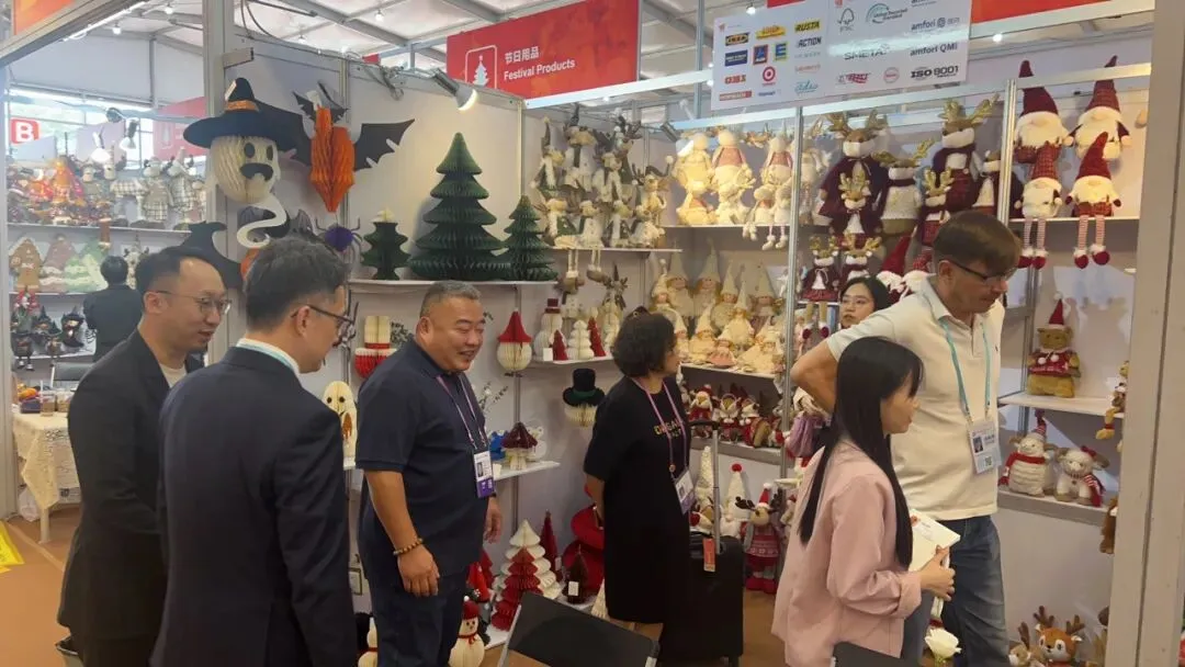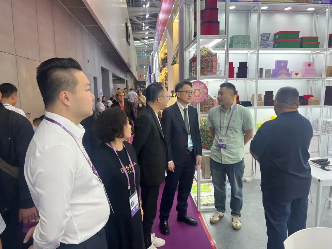 在节日礼品展区,商会走访了汕头市澄海区耀虹工艺制品有限公司、汕头市鑫泽工艺有限公司等,各企业负责人纷纷点赞证件管理改革带来的成效。大家一致表示,今年现场照相、窃取设计思路等问题明显减少,优质客户采购商占比提升,交流更聚焦于产品细节、订单合作等核心议题,极大提升了洽谈效率。在礼品和赠品展区,商会走访了汕头市金辉濠工艺厂有限公司、汕头市紫色风包装制品有限公司等,纸盒工艺品参展商表示,今年主要客户群是欧洲和中东,大家对“中国制品”的品质,尤其是在工艺细节和定制化服务上认可度大幅提升,环保升级的纸盒产品更获得市场的青睐。