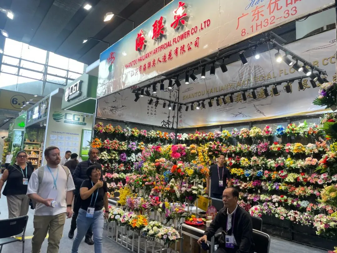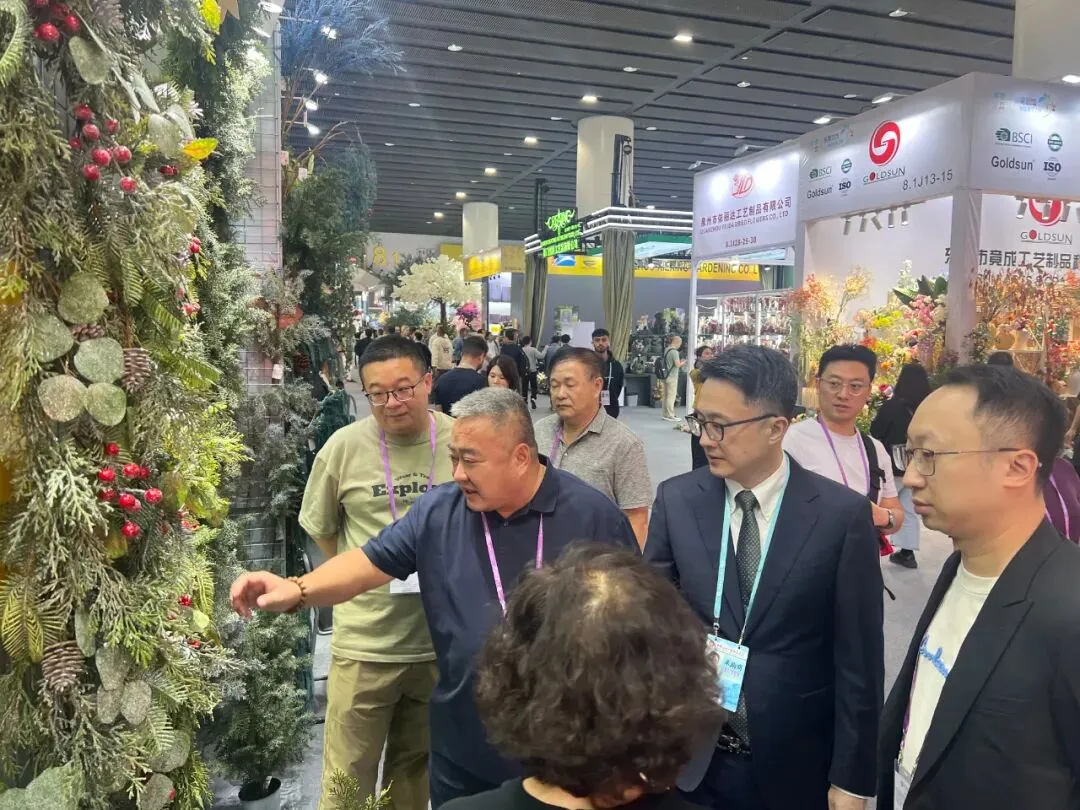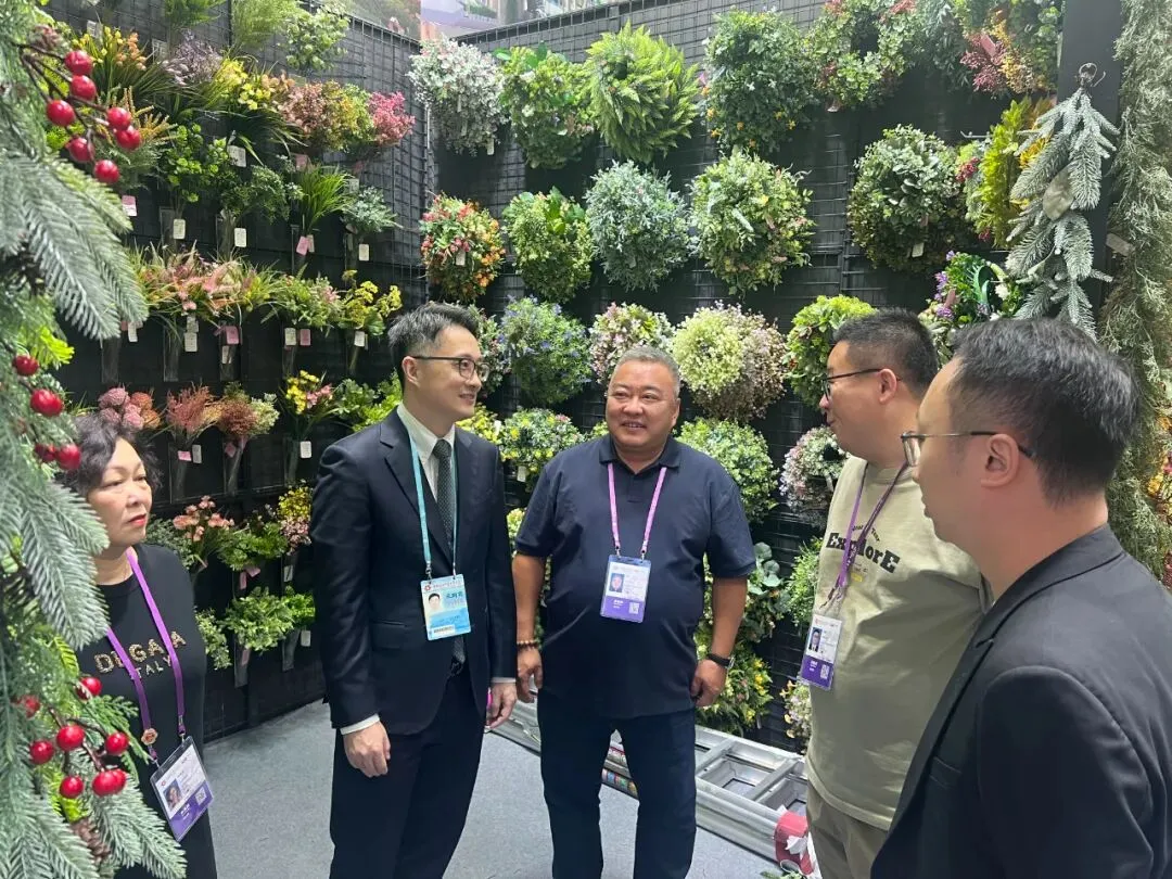 在园林展区,商会走访了广东新正芳能源科技有限公司、汕头市泓粤贸易有限公司、汕头市达辉盛工艺实业有限公司等,了解到本次展会大家纷纷携带最新设计的产品参展,在传统人造花的基础上很多企业也进行了改良创新,让产品的着色和造型更加逼真。