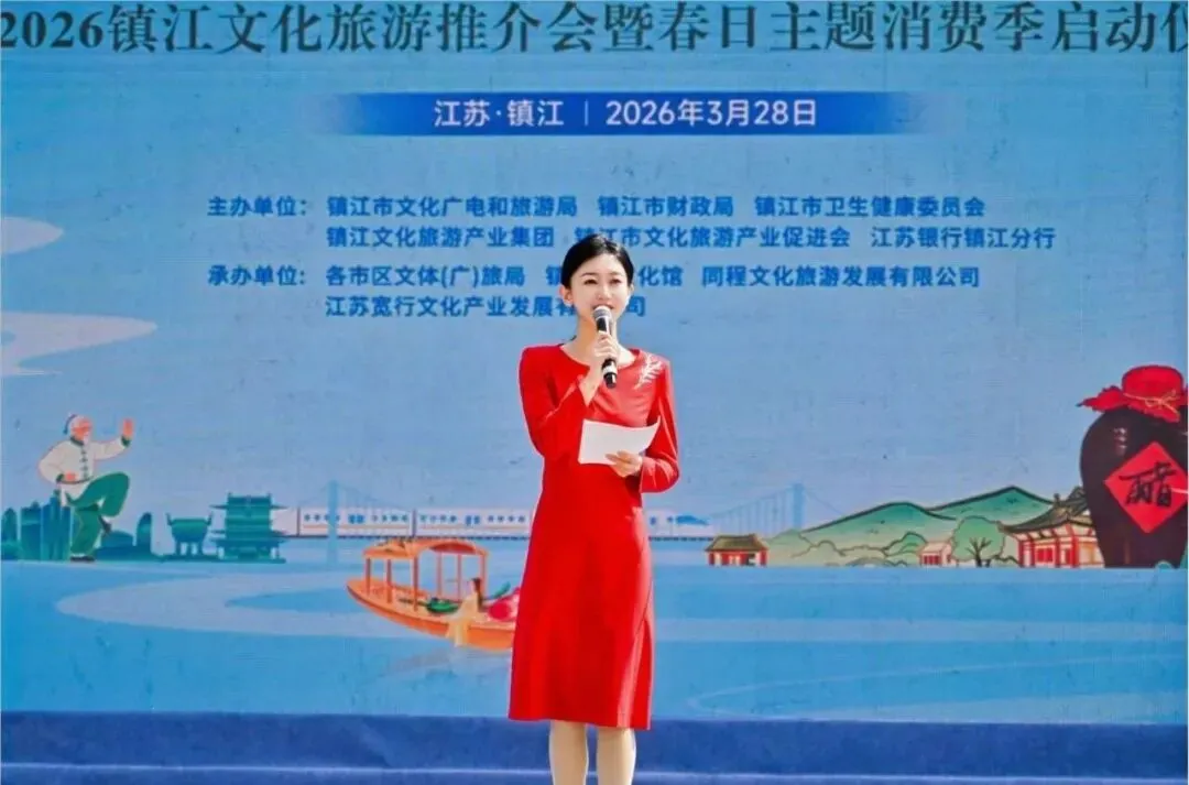 镇江是一座以山水见长、以文脉润城、以食疗养人的江南名城。活动现场,镇江向八方来客递出一张“宜游”名片——山水养身、文化养心、食疗养体,三重体验交织成一条贯穿四季的康养之路。润州区文旅推介官带来的春日主题康养线路推介,将南山、茅山、圌山等康养地标与轻徒步、慢生活、深体验有机串联,为都市人群勾勒出一幅可游可居、可养可憩的理想旅程。同程旅行政府合作部副总经理、华东区总经理沙云晖现场发布“同程旅行康养有道线上旗舰馆”,让镇江康养资源一键触达;江苏银行镇江分行零售业务部副总经理陈欣带来2026“苏超”联合推广计划,以“体育+文旅+金融”跨界融合为文旅消费注入新动能。2026年镇江文旅推介官联袂唱跳,惊艳亮相,他们来自各行各业,因热爱相聚,未来将以青春之声讲述镇江故事、传递城市温度。