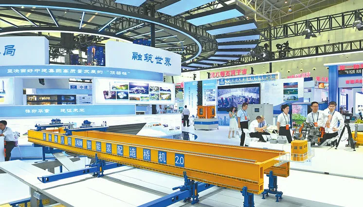 2024年6月28日,客商在中国建筑第八工程局有限公司展位参观中建八局IABM智能装配造桥机2.0模型。