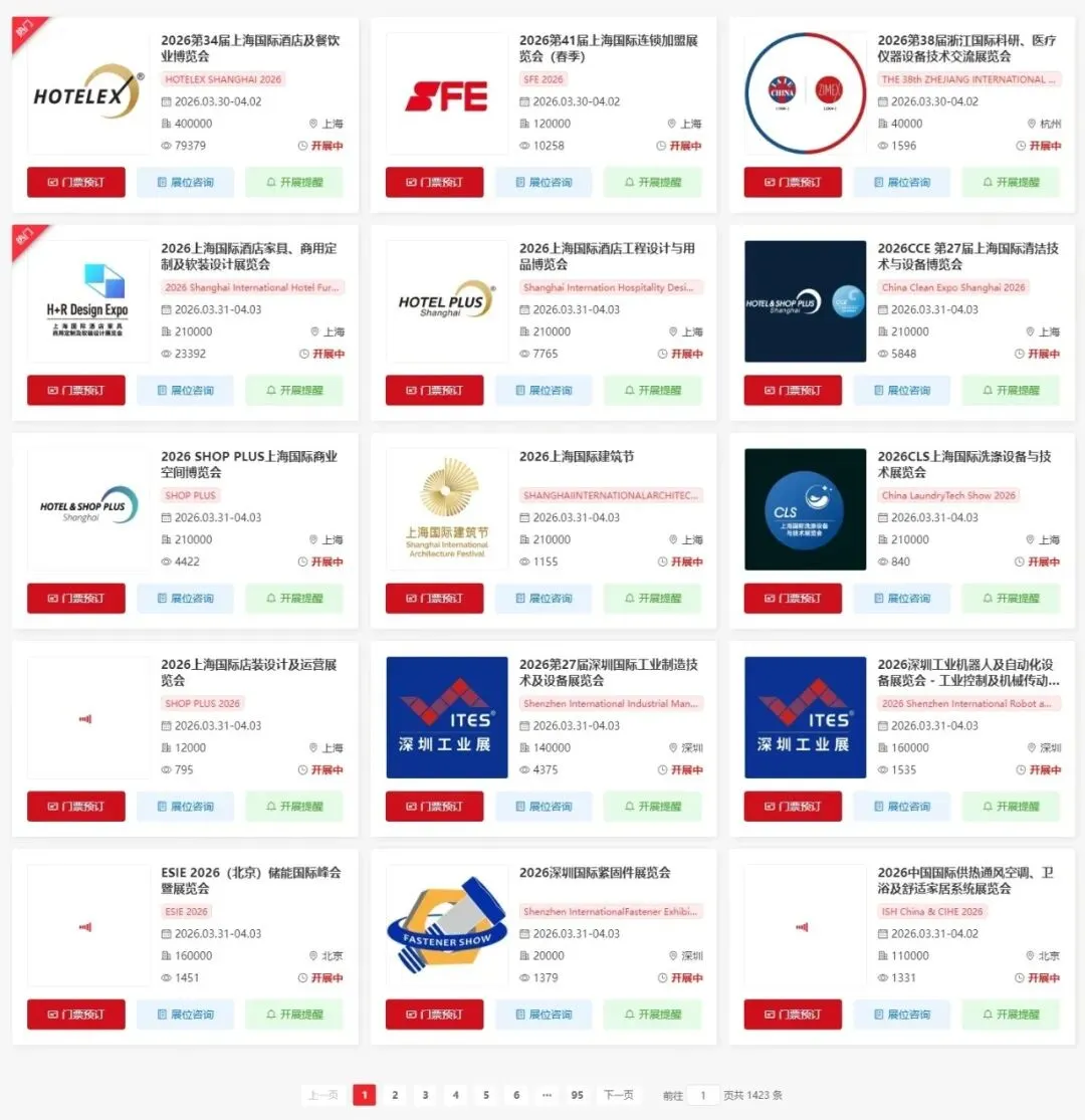 | 民宿 | 2026杭州国际民宿文旅产业博览会暨乡村旅游装备交易会 | 2026.04.25-27 | 杭州国际博览中心 |