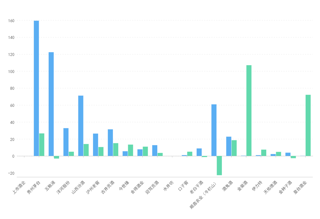 金种子酒、天佑德酒、牛栏山、伊力特中高端则表现不及预期,较同期出现负增长;水井坊、口子窖增速放缓,分别为0.1%、1.7%;与去年疫情下的经济大环境有直接关系。