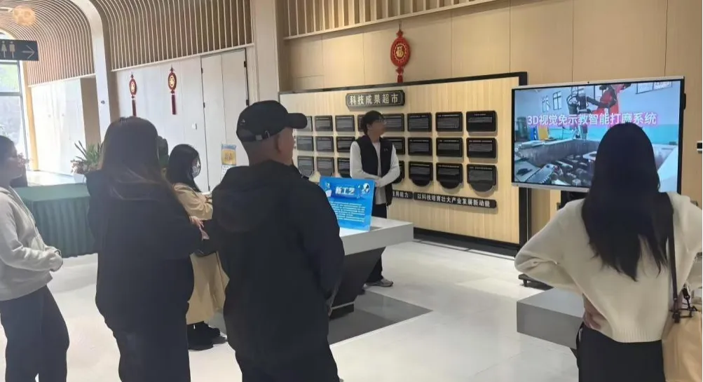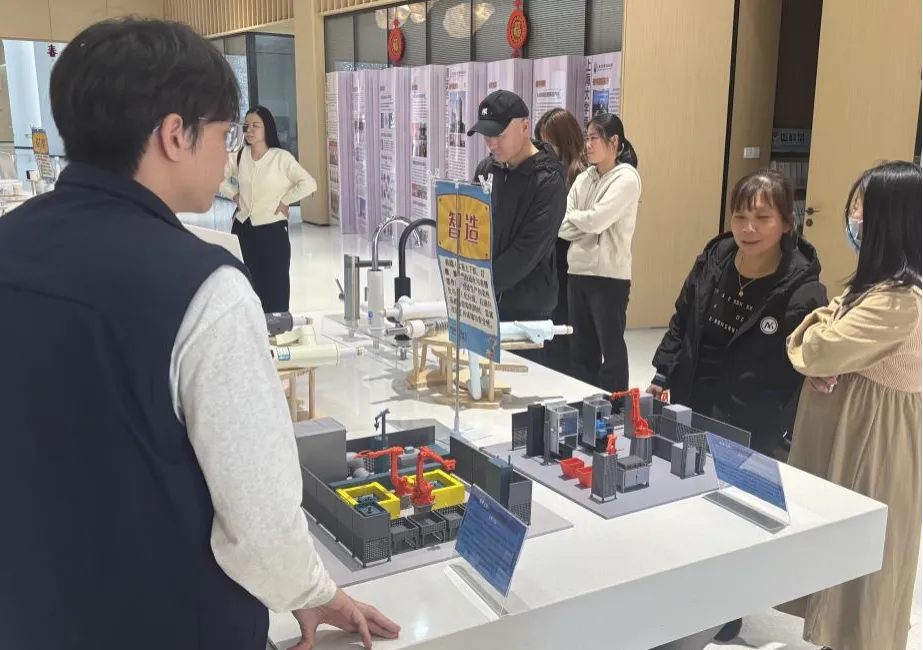 新工艺区通过等比例缩小的“免试教AI机器人”模型与关键工艺样件,直观呈现了自动化技术在精密打磨、装配等环节的应用。这些技术助力企业实现高一致性、可追溯、柔性化的生产模式