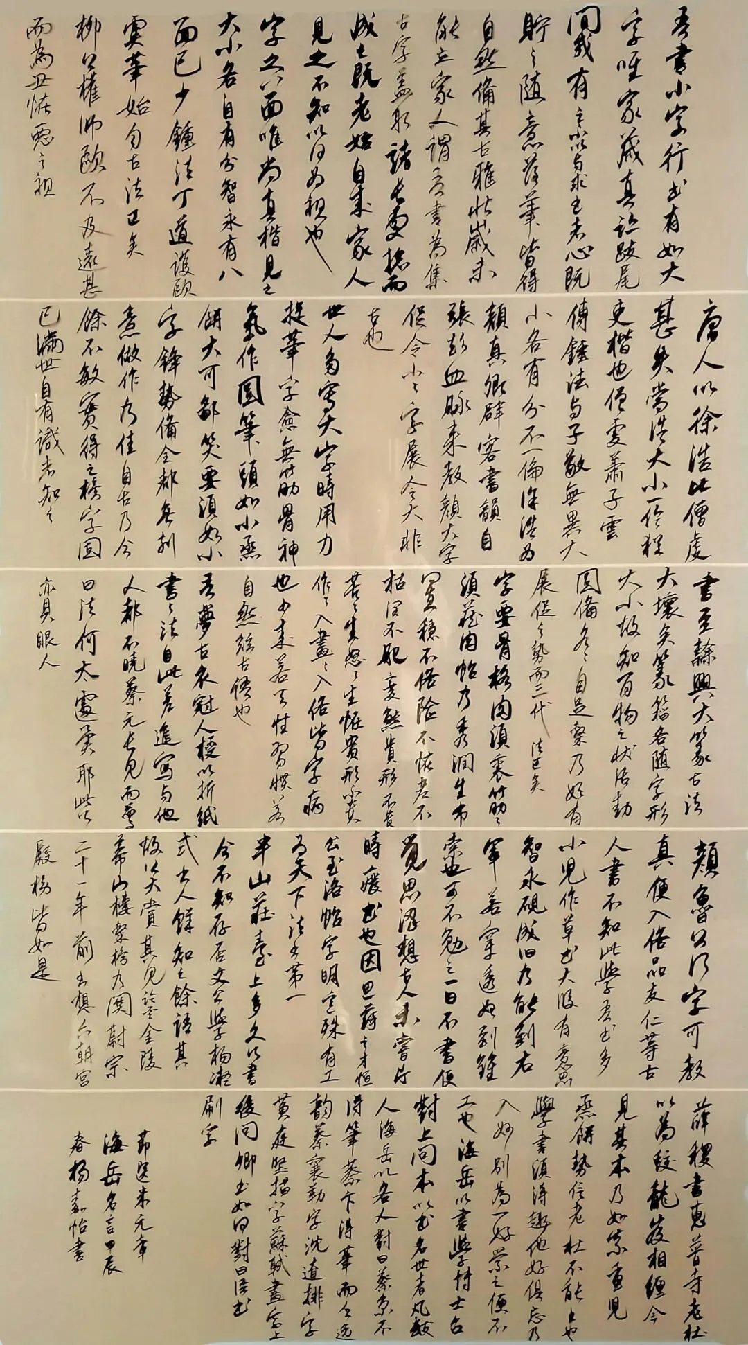 作品简析:作品内容选自《海岳名言》,表达米芾主要书学思想的段落,试图将米芾的用笔和个人风格相融合,追求字形变化和墨色对比。