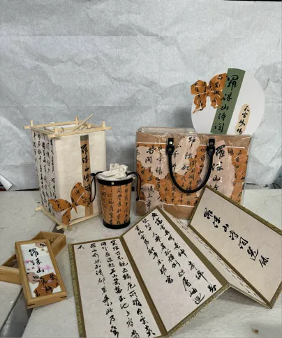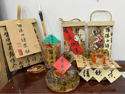 作品介绍:作为岭南第一山的罗浮山,历朝历代的文人留下了大量的诗词歌赋,无不蕴含着丰富的文化内涵。作品以罗浮山诗词为素材,融合书法文创理念,利用不同材料,不同形式进行创作,来展现罗浮山的独特魅力。