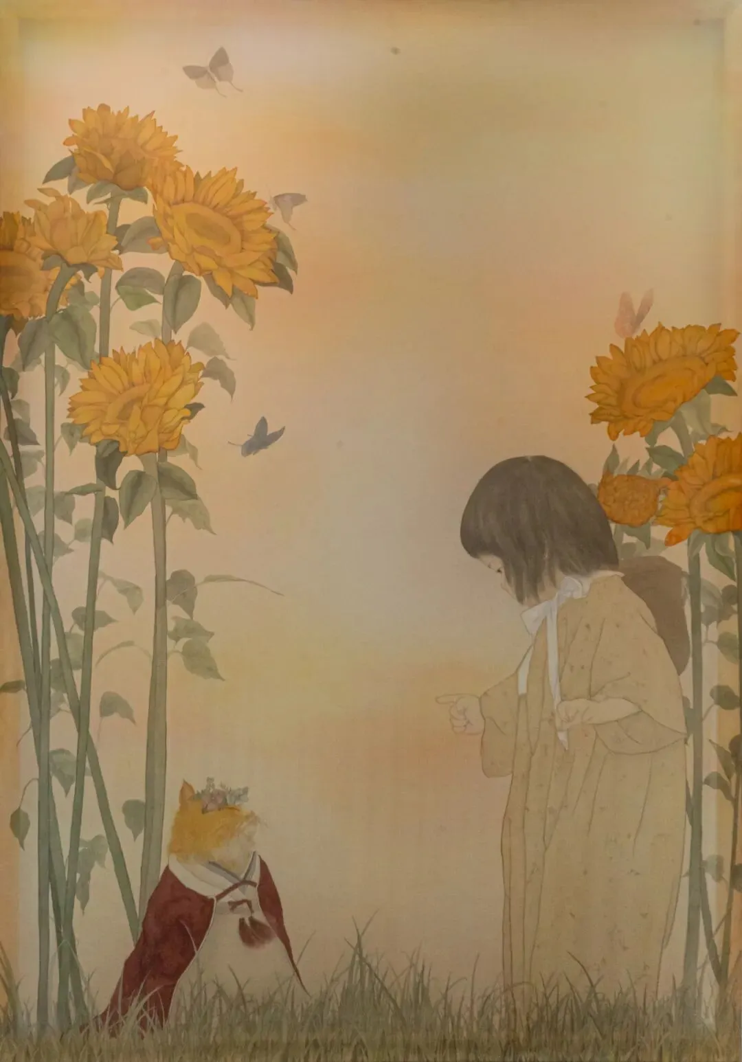 作品介绍:《童趣》以传统中国画所使用的绢为载体,采用了工笔勾线、层层敷染的方法,绘制出充满童趣又生意盎然的艺术作品。创作者尝试通过对儿童、猫咪形象的细致描绘和氛围的渲染,来体现儿童与小动物的纯真,歌颂她们之间真挚的情感。这幅作品也寄托了创作者对生命初期那无忧无虑的童年时光的怀念。