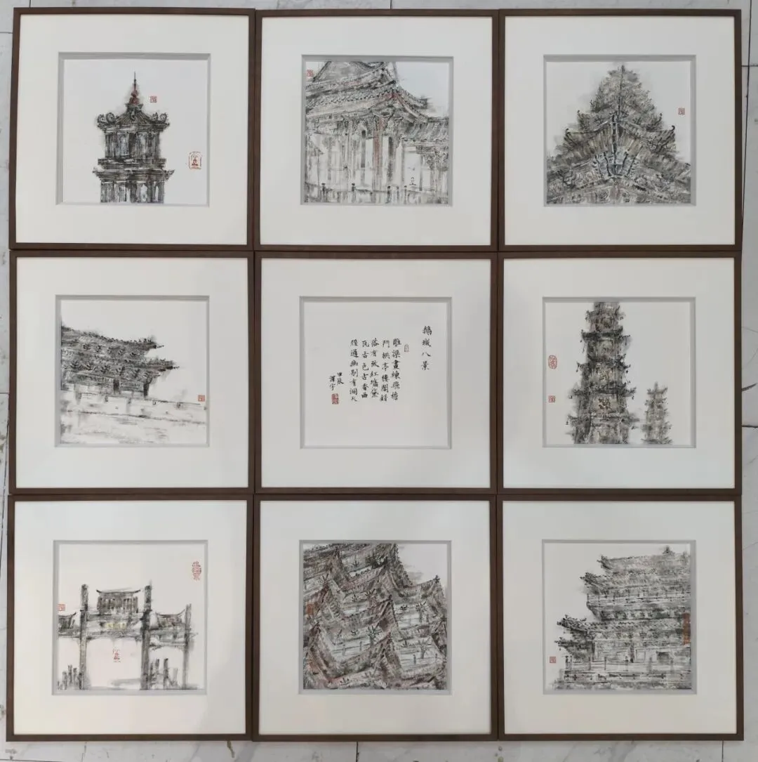 作品介绍:本作品通过写意绘画的表现方式描绘惠州本土人文景观等。对惠州古典建筑的描绘,做到“墨法笔法,深得董、巨之妙。”通过笔墨和构图来表达对自然、人生和宇宙的思考和理解。这种表达方式强调古典建筑的壮丽和气势,以及人与自然的和谐关系。