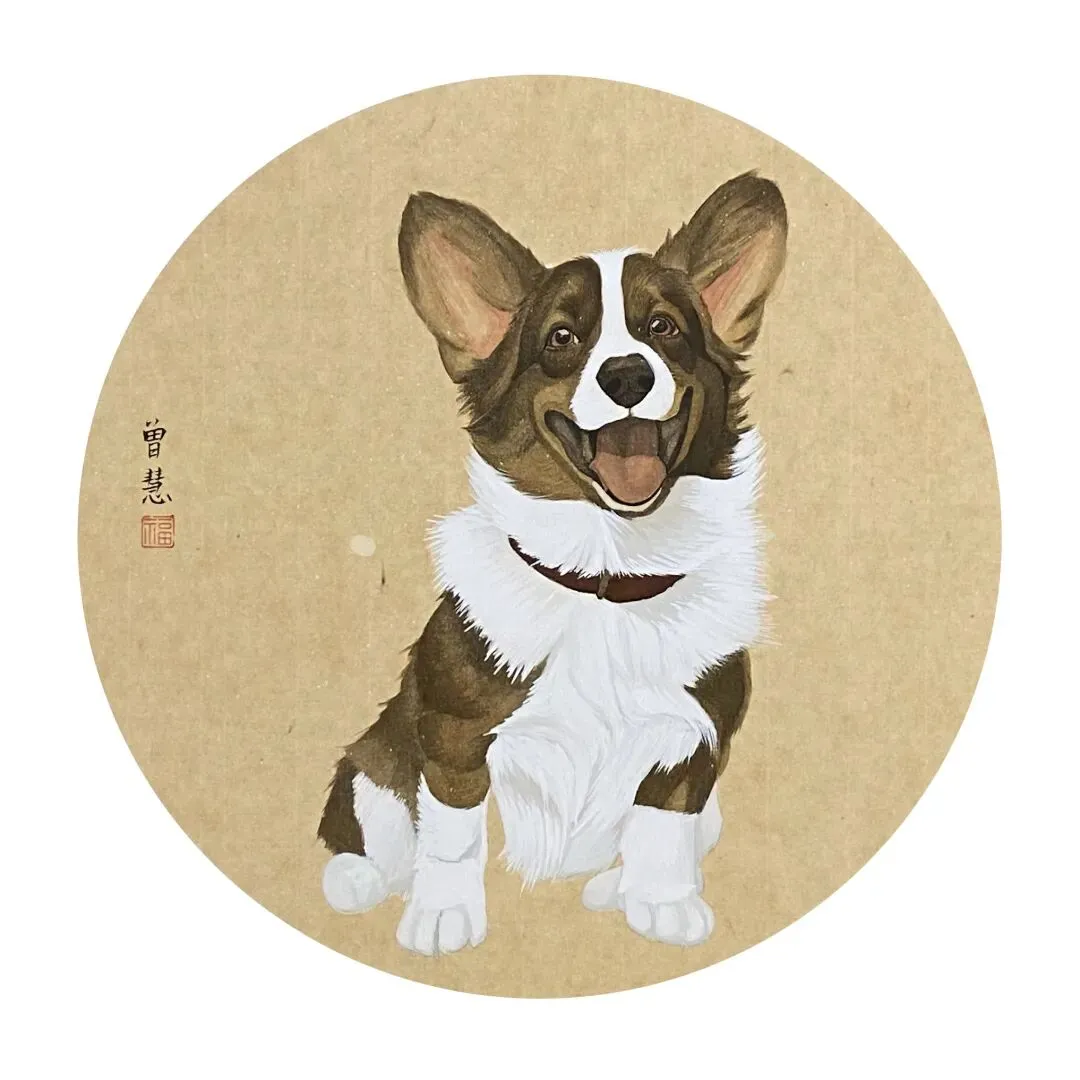 作品介绍:《福宠图》以中国画的表现形式展现小猫、小狗与鸭子等动物的灵动之姿,为观者带来美好的视觉享受与心灵触动。同时希望此作能唤起人们关爱与保护动物之心,让这份美好与和谐流淌于每一个生命之间。