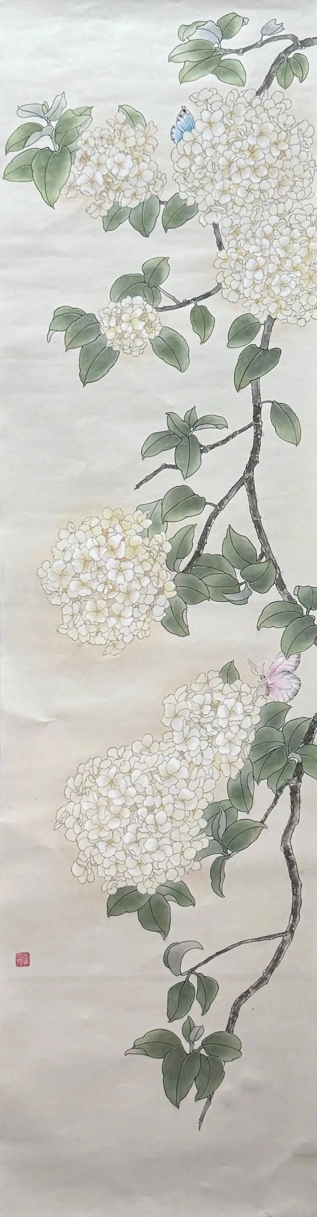 作品介绍:绣球花又称为无尽夏,仅在夏天开花。其花语意味着对生活的热爱与追求,不畏烈日,尽情盛放。希望我们能如绣球花一样,对生活充满热忱、热爱。