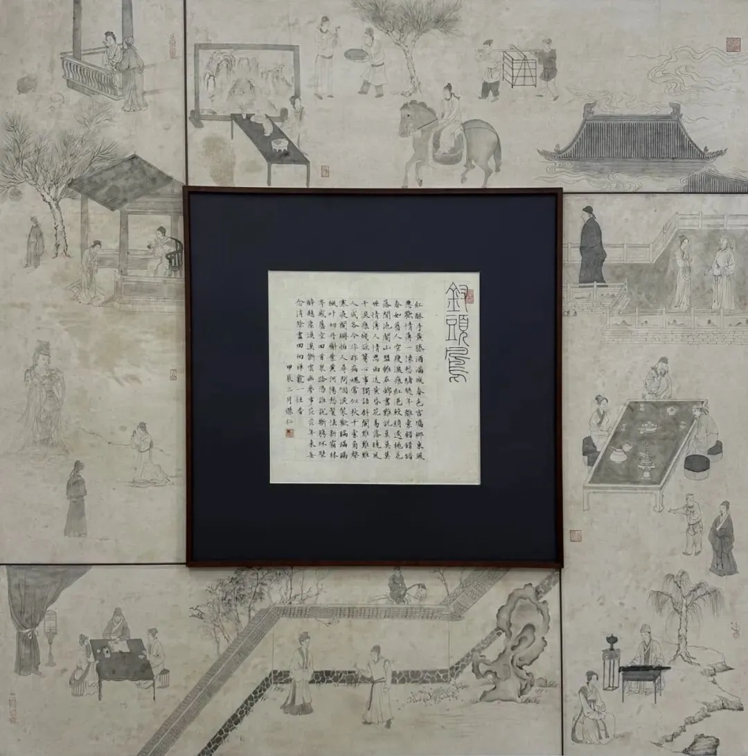 作品介绍:本人作品以南宋诗人陆游的诗词《钗头凤》为创作背景,用传统的工笔人物画方式表现,采用“回”形构图将里面的情节巧妙联系起来,丰富了展览的形式。画面描绘了陆游与唐婉从结为连理到无奈休妻,以及多年后再相见时的婉惜。讲究每个场景、每个块面的丰富性,黑白灰的搭配将整个画面的整体性表现得更完美,营造了一种淡雅的气氛。