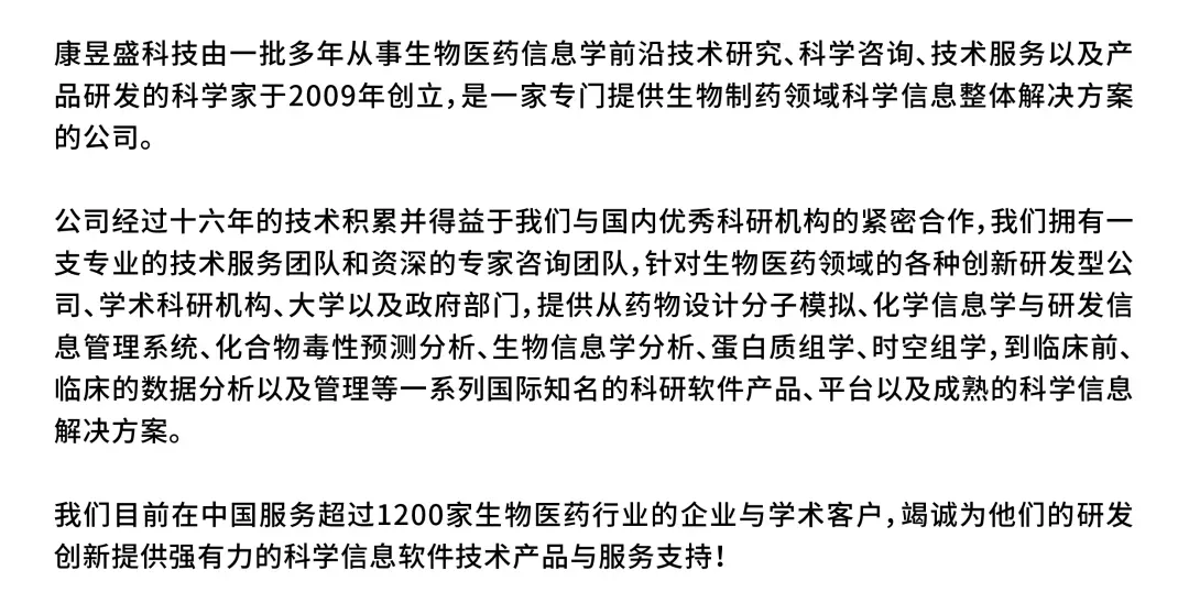 我们还准备了化学结构编辑和属性预测工具MarvinSketch;用于靶点发现的GPU加速的多组学数据库Talk2Data;蛋白质质谱数据分析软件Mascot等产品,欢迎莅临我们的展台,深入了解MOE等产品如何助力抗体与ADC药物从设计到优化的全流程加速。