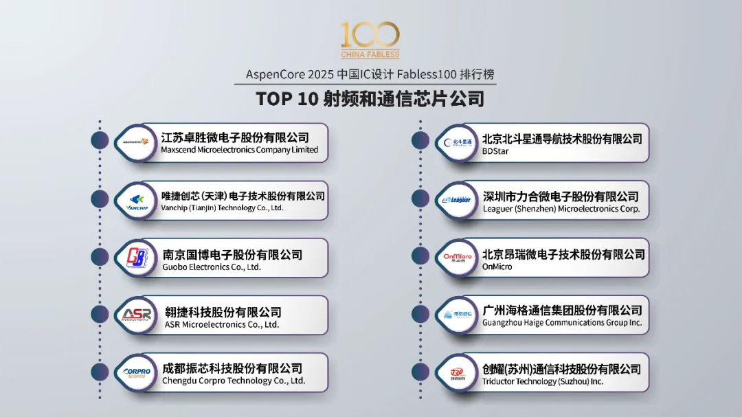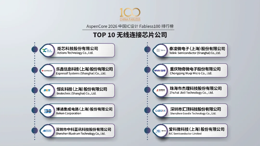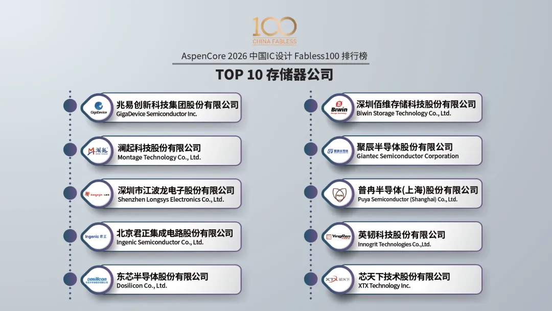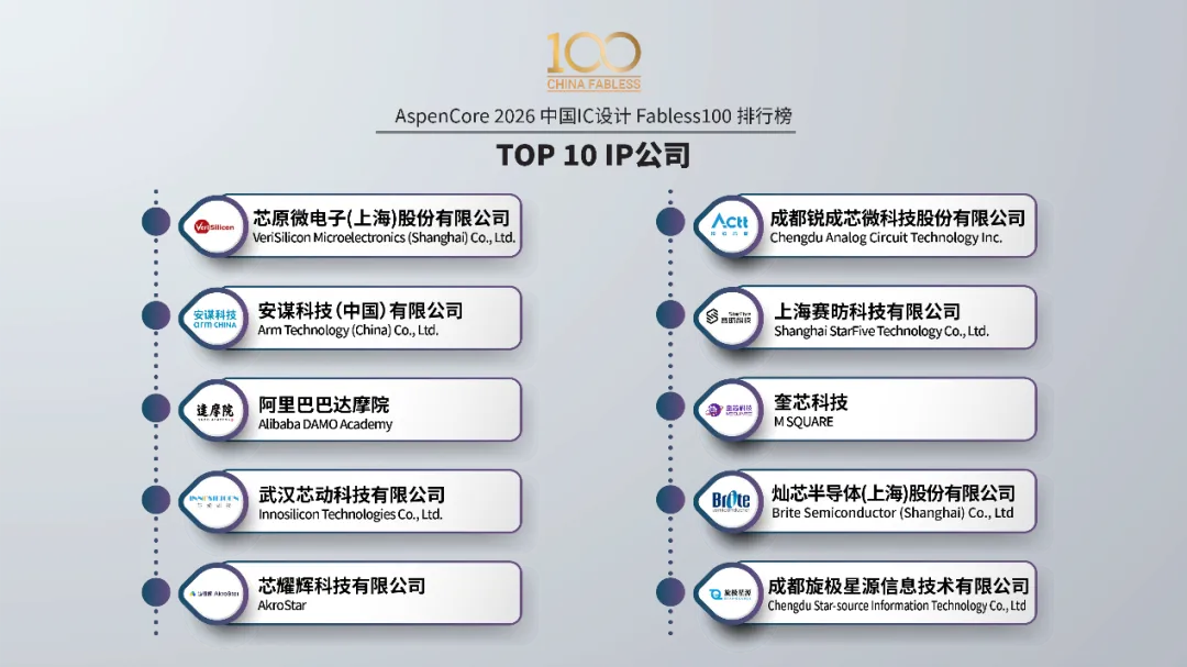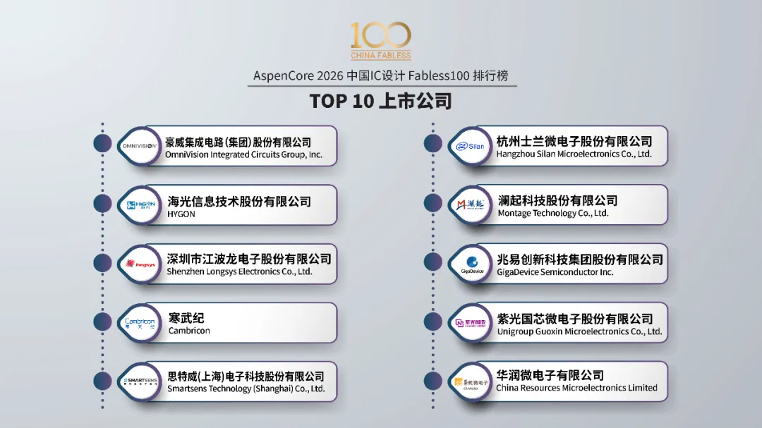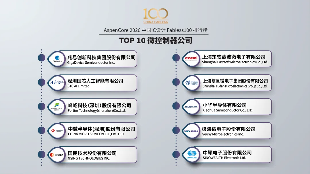 本届中国IC领袖峰会以“以韧为刃·向高而跃:中国半导体的攀峰之旅”为主题,深入探讨了在AI浪潮与地缘新格局下,中国IC产业如何破局突围、锁定增量。AI与算力是贯穿始终的核心议题。Cadence、是德科技、思尔芯、益思芯科技等公司的专家分享了从AI芯片IP、测试验证、EDA工具到DPU算力架构的全栈思考。存储生态的自主可控成为焦点。东芯半导体副总经理潘惠忠阐述了构建存储生态共同体的路径,而英韧科技陈杰博士则聚焦于AI SSD这一未来存储的关键战场。汽车电子与通用芯片的硬核突破同样引人注目。思特威展示了车载视觉感知技术的升级,武汉芯源则详解了国产MCU在模拟外设集成上的技术优势。04 权威榜单:Fabless 100勾勒产业竞争全景