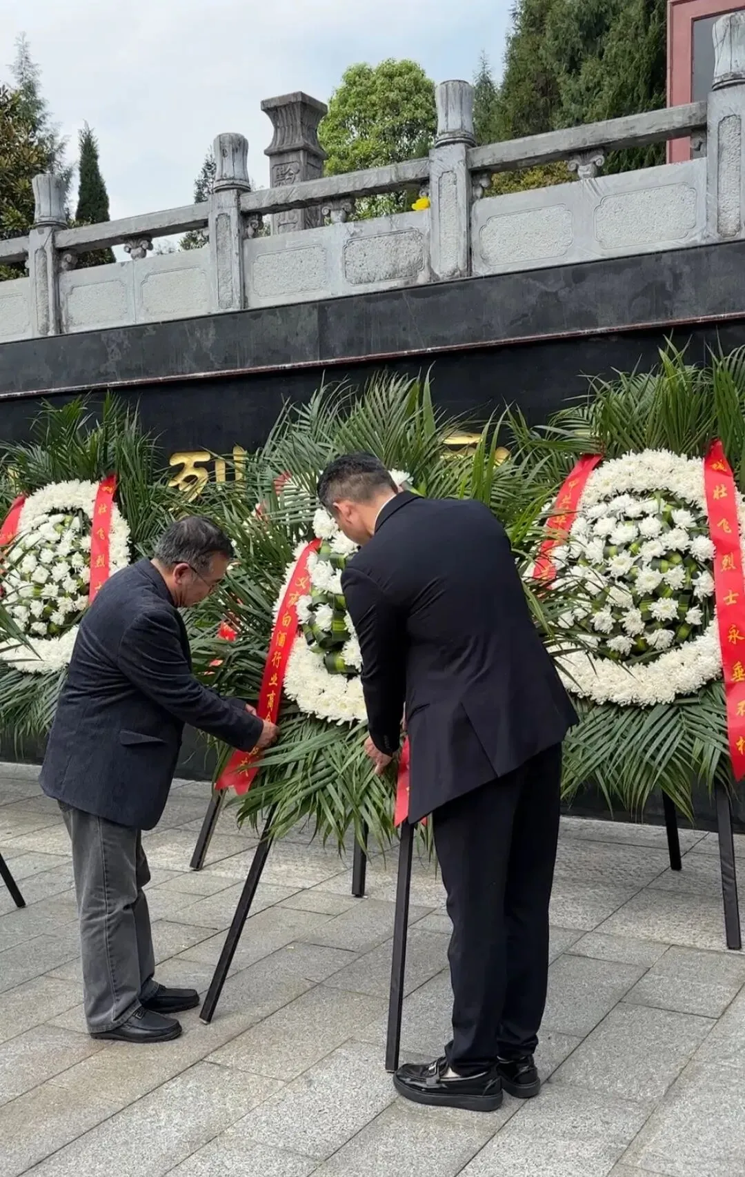 党支部书记范泳涛和办公室主任张黎明敬献花篮
