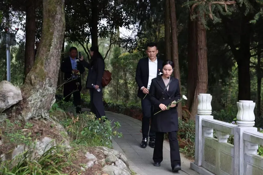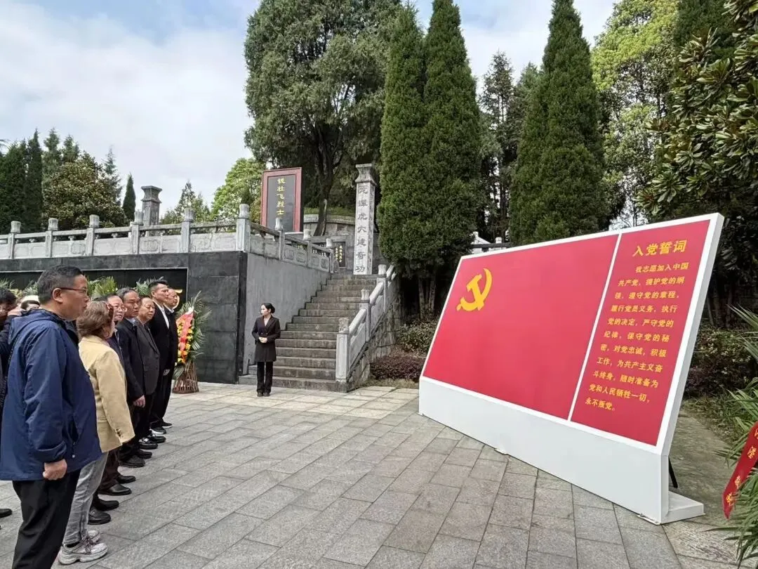 活动现场,全体人员庄严肃立,向钱壮飞烈士默哀致敬,敬献花篮、整理缎带,缓步绕行烈士陵墓,敬献鲜花,深切缅怀革命先烈的丰功伟绩。