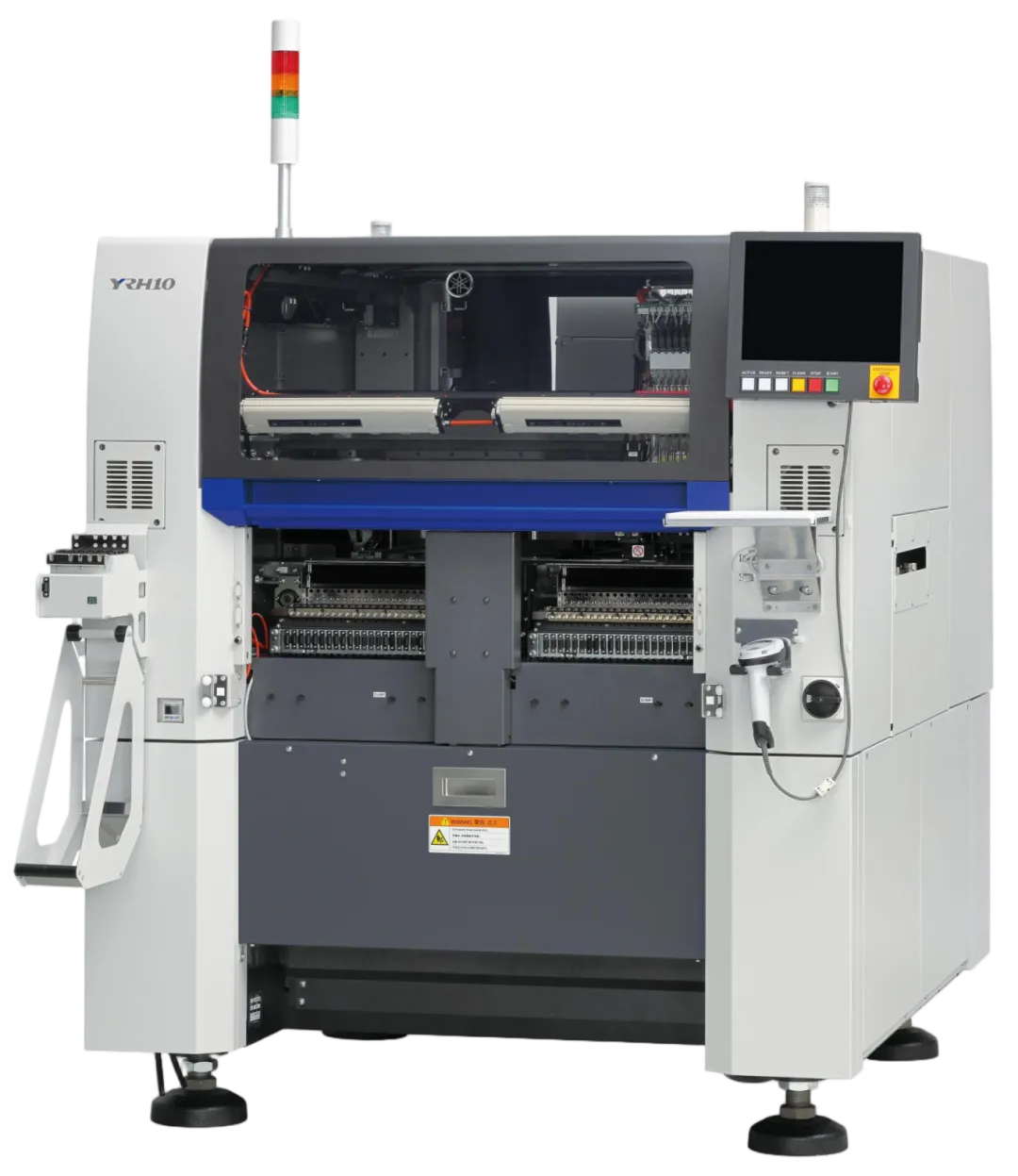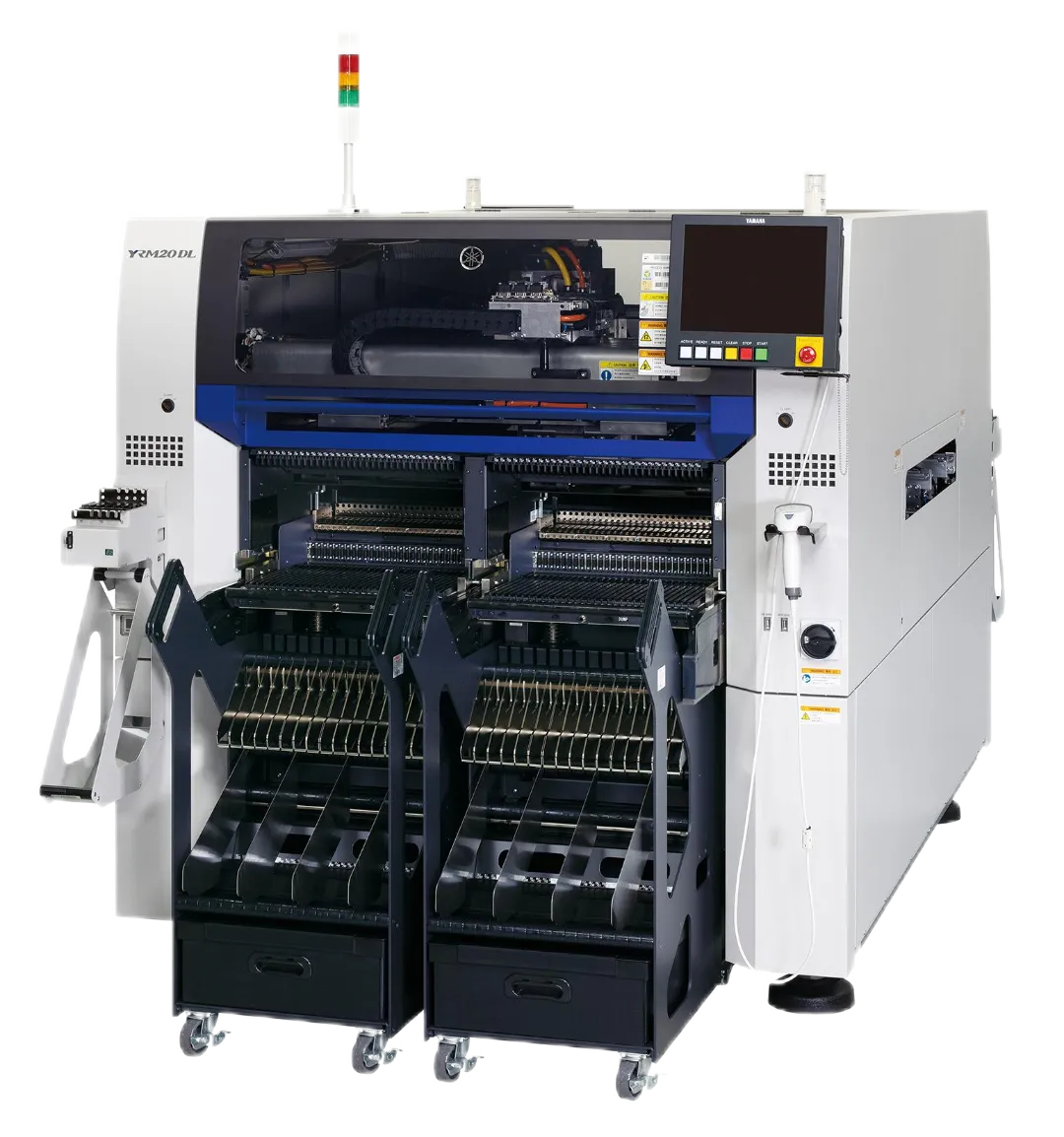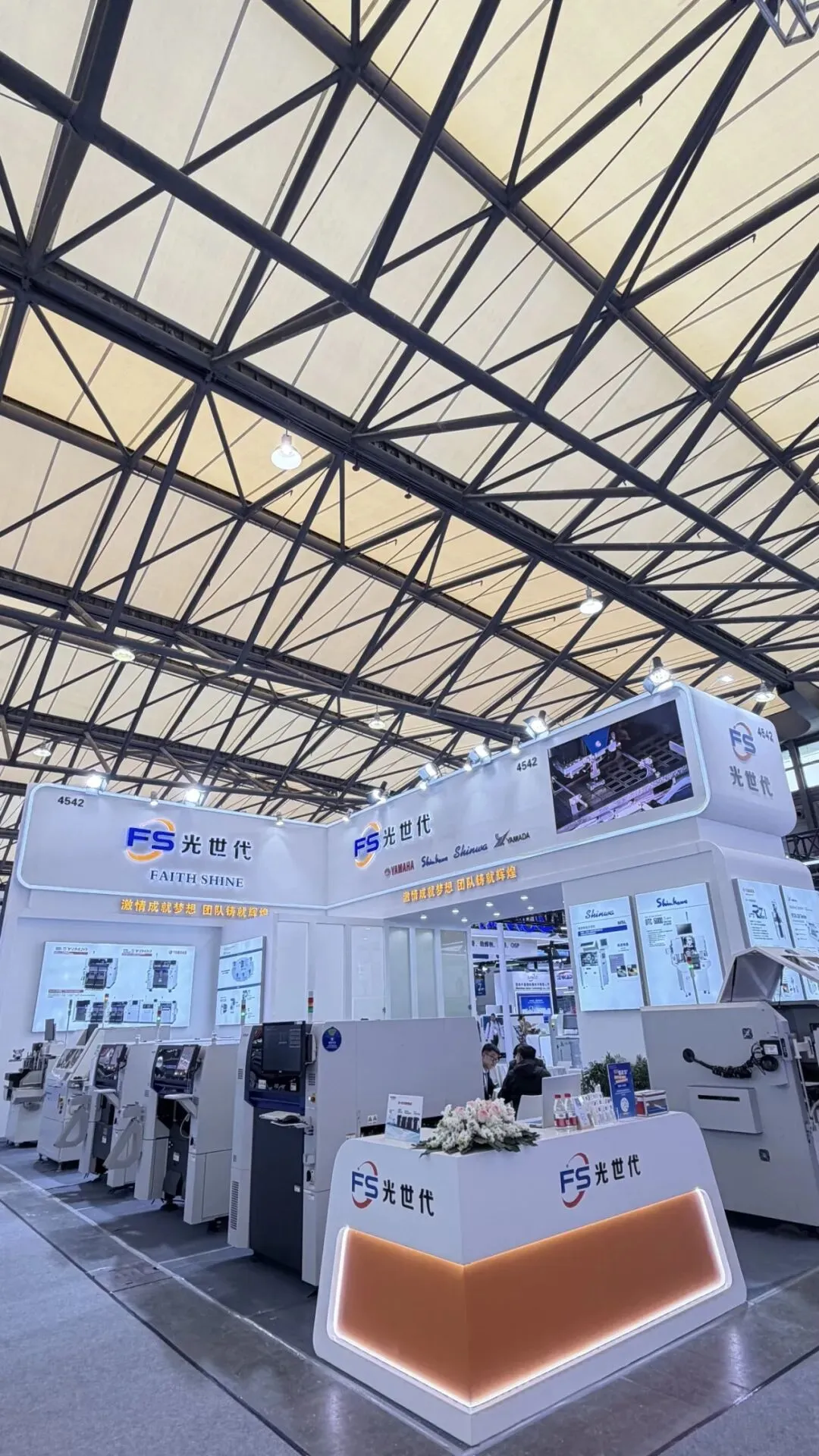 Equipment Exhibition Area 光世代今年携7台核心生产设备重磅亮相,展品阵容丰富多元、覆盖全流程产线需求,本次全方位直观展现设备应用场景与核心优势,为电子制造行业的专业观众带来全新 技术视觉盛宴,助力行业技术升级与模式创新 ,各设备功能特点明确、优势突出,具 体介绍如下: 高端高效模块贴片机YRM20作为雅马哈旗舰级贴装设备,搭载双贴装头设计,无需更换即可实现全规格元件贴装,RM贴装头速度可达115000CPH,HM贴装头速度98000CPH,贴装精度±25μm,适配0201微型元件至55×100mm大型元件及510mm宽基板,兼具高效与通用。设备搭载高速送料器、优化传送带及智能调试、维护功能,大幅提升生产效率与稳定性,是现场观众关注度最高的机型之一。