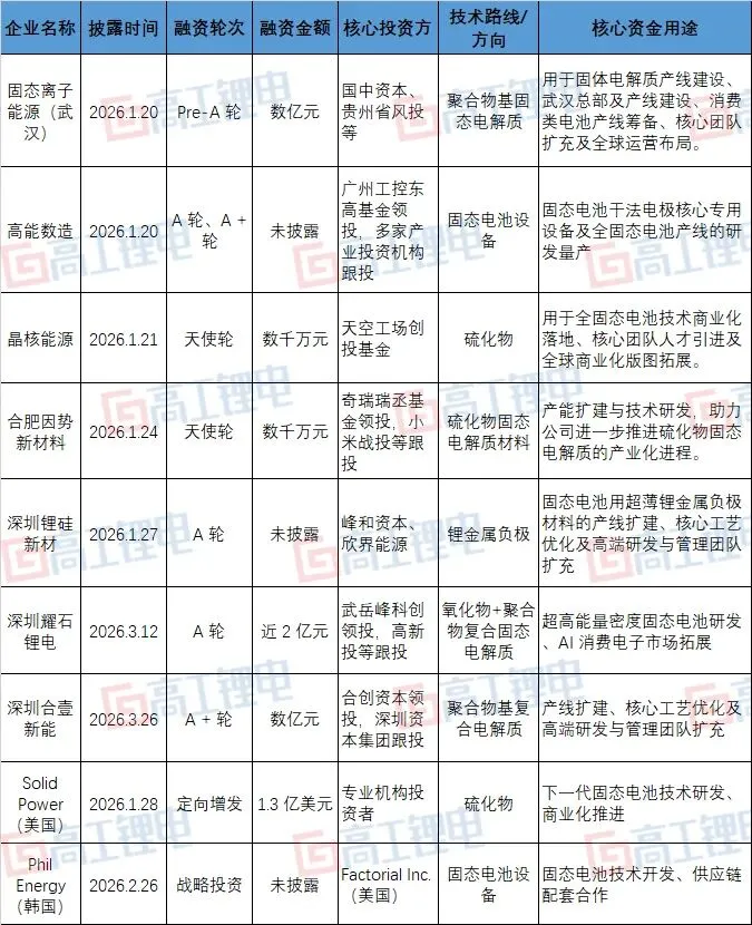 随着量产节奏持续加快,掌握核心材料与设备技术的企业,正逐渐成为产业与资本争夺的核心标的。未来,具备固态电解质量产能力、掌握锂金属负极核心技术以及核心装备量产能力的企业,会成为资本方、头部电池厂与主机厂争相投资、并购的核心对象。