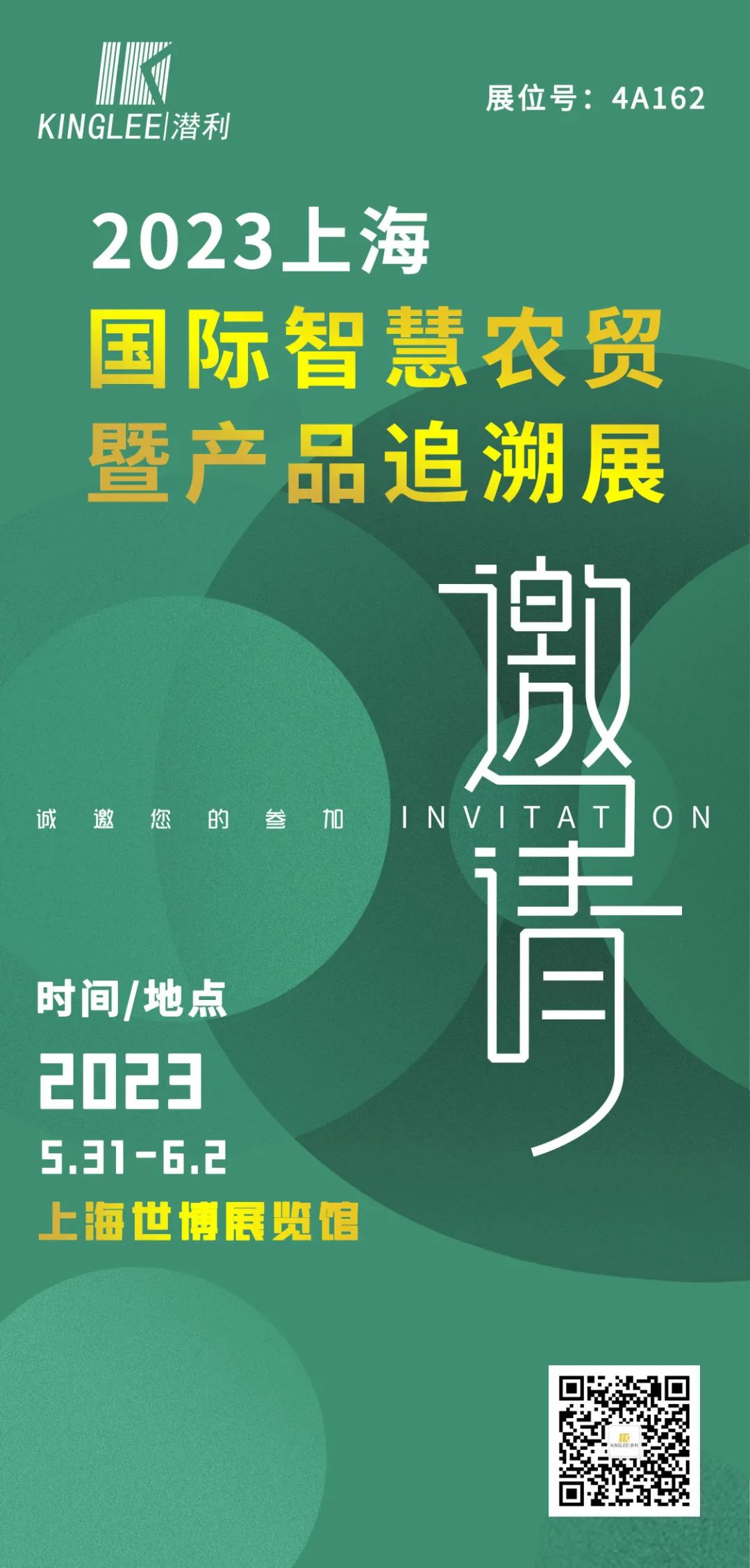 潜利期待在展览会上与您相见!2023上海国际智慧农贸暨产品追溯展览会,地址:上海世博展览馆(国展路1099号),潜利展位号:4A162,欢迎新老客户莅临参观!