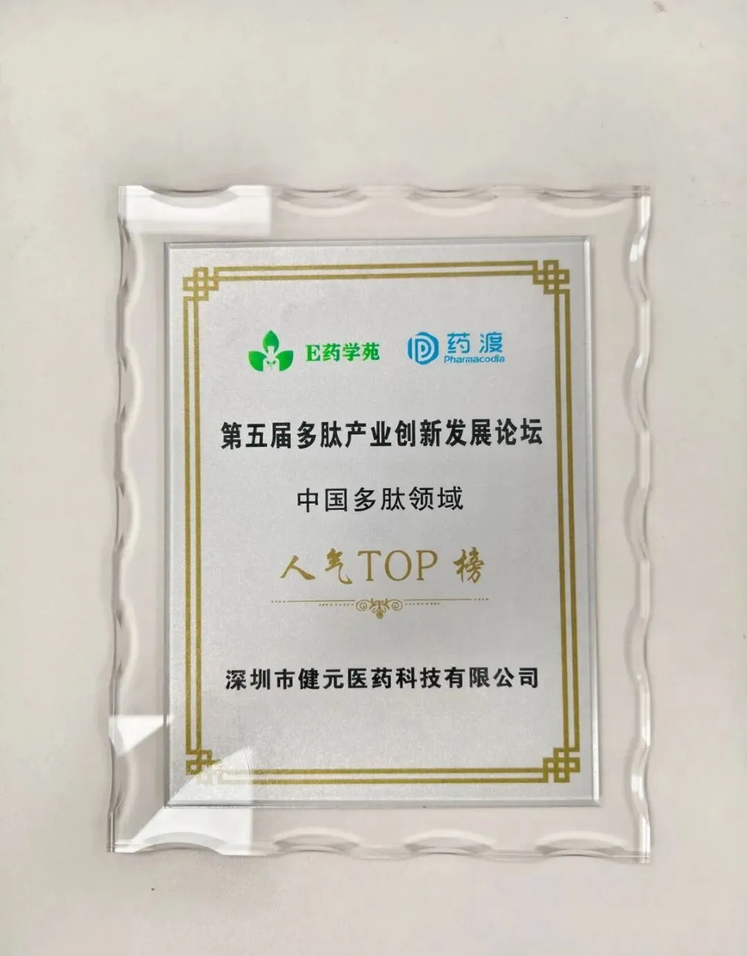 2026年第五届多肽产业创新发展论坛于3月26日在苏州吴中希尔顿酒店举办,健元医药在本次论坛上成功入选中国多肽领域人气TOP榜。