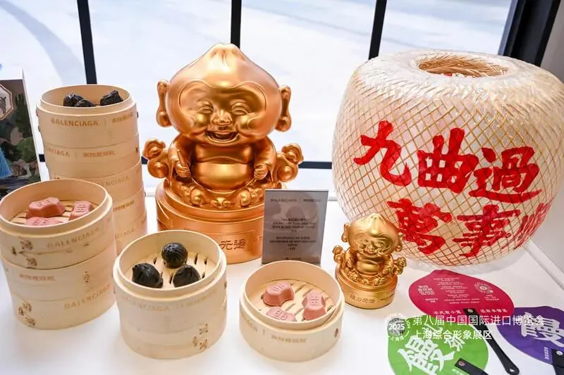 本届进博会上,豫园股份旗下多个品牌入驻上海城市形象馆展区,以“跨界新生”为主题,系统呈现老字号品牌探索跨界破圈的实践与文化出海的成果。