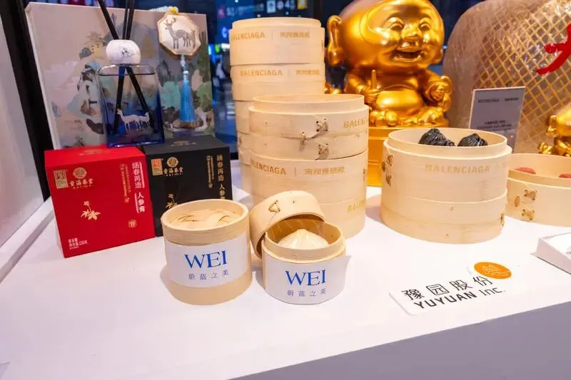 在品牌跨界领域,百年老字号南翔馒头展示了其与法国时尚品牌巴黎世家展开创意合作,推出的融合中西特色的限定美食黑松露小笼包以及兼具传统与时尚的定胜糕。南翔馒头还与美妆品牌WEI蔚蓝之美跨界联名,带来小笼包造型手工皂,进一步拓展了老字号在生活美学领域的表达维度。