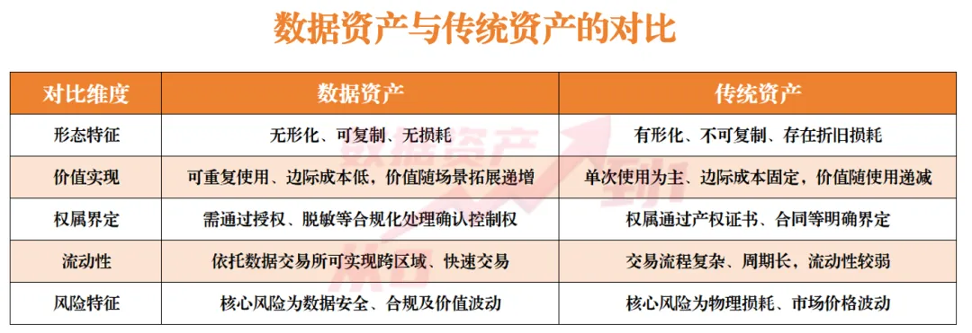 数据资产是指企业(或特定主体)合法拥有或控制,能进行货币计量的,且能够持续为企业带来可预期经济利益的数据资源。其核心特征可概括为四点:一是权属清晰,企业对数据资产拥有合法控制权(如通过授权运营、自主采集等方式获得);二是价值可量化,能够通过直接交易、授权使用、辅助经营等方式产生经济利益;三是形态无形,无实物载体但可通过技术手段存储和传输;四是合规可控,符合《网络安全法》《数据安全法》《个人信息保护法》等法律法规要求,完成必要的脱敏、加密等处理。相较于土地、设备、固定资产等传统资产,数据资产的上述独特属性为产投公司融资提供了新的可能性。