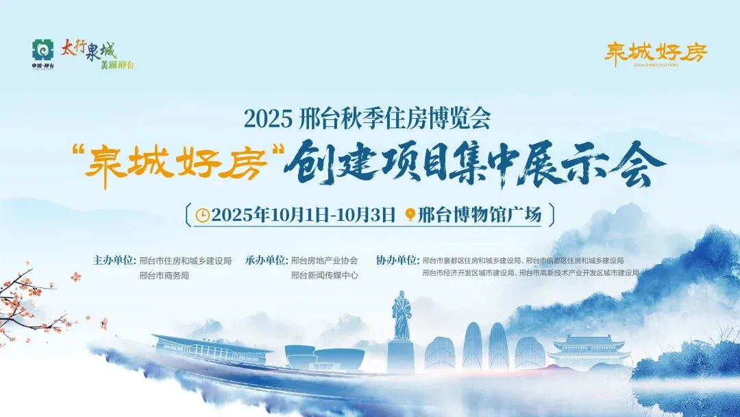 千年邢州,潮涌泉城。当国庆的晨光洒向邢台博物馆的琉璃瓦,一场跨越时空的安居盛宴即将在2025年10月1日至3日拉开帷幕——2025邢台秋季住房博览会暨“泉城好房”创建项目集中展示会,正以历史为卷、未来为墨,邀您共绘理想生活新图景!