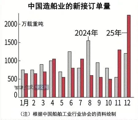 进入2026年,中国造船业交出了一份令世界瞩目的成绩单。据国际船舶网最新数据显示,今年1月,中国在全球造船业新接订单中的份额高达67% ,2月更是飙升至惊人的80% 。