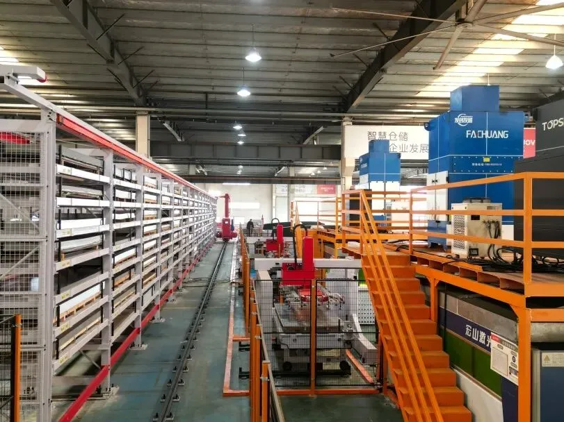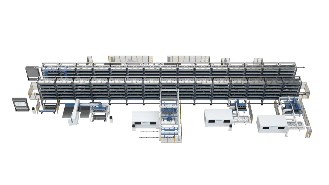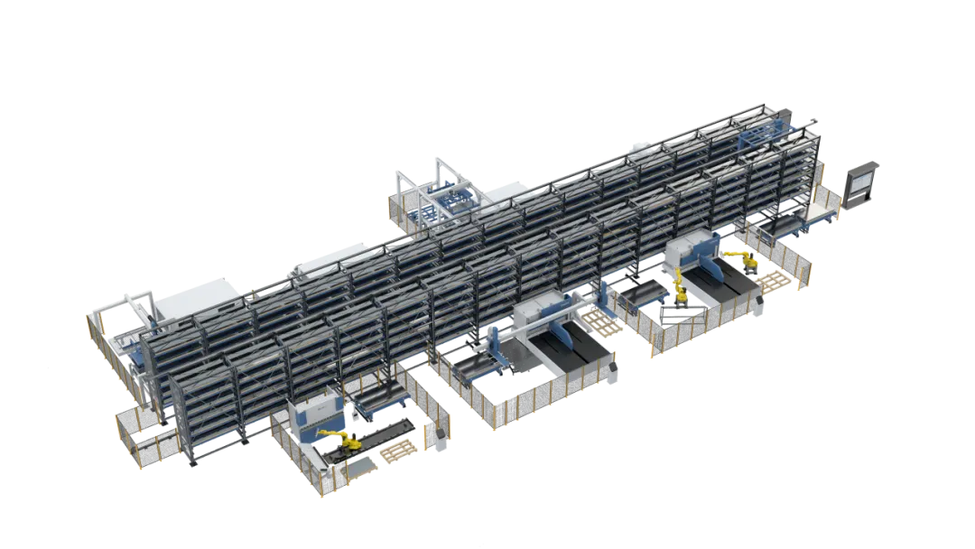 传统钣金加工中,上下料、转运、分拣、回库等重复性工作,往往需要大量人工投入,不仅人力成本居高不下,还容易因人工操作失误导致产品误差、效率低下。而钣金智能生产线深度整合激光、数冲、折弯等核心加工单元,搭配立体料库、自动化上下料系统、自动传输装置及半成品回库系统,实现从原材料存储、加工流转到成品下料的全流程自动化闭环作业。