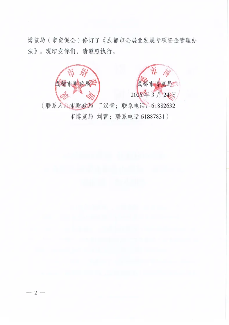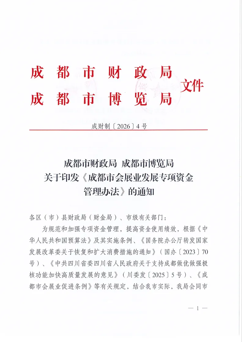 《成都市会展发展专项资金管理办法》印发