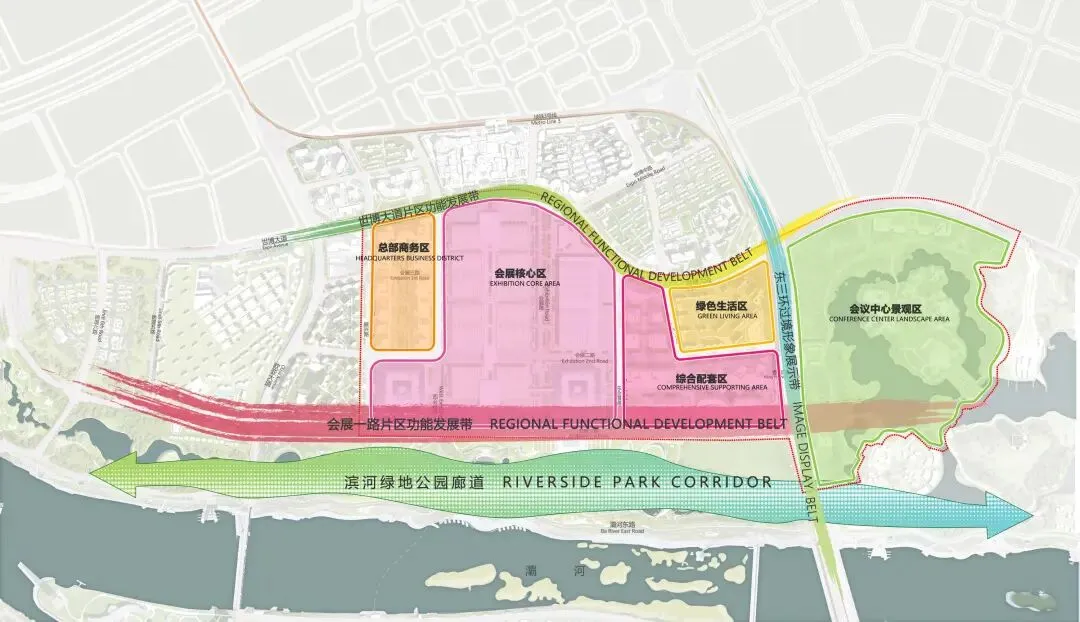作为城市的核心功能区和标志性战略区域,以“会展+生态、会展+城市、会展+文化”为总体思路,强化城市与区域发展轴线、塑造多样城市空间、 完善功能片区特色,确立城市门户形象。(图3)
