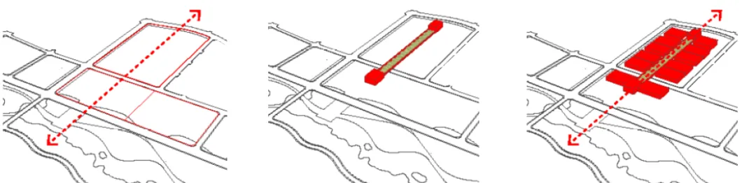 会展西片区南侧空间为宽度200-300米的现状绿地,是灞河曾经的河道,有一条东西向的陡坎高差为 8-10 米,中央有一条内河道水系,亲水空间少。作为会展片区建筑门户的前公园,承担着人群集散、形象功能展示、配套设施补充、开放空间打造的重要功能。在修建性详细规划阶段通过确定公园的内部流线、功能分区进一步指导景观设计,在重新赋予场地生态功能的同时,创造一个连接城市、自然和文化的国际滨水公园,将其打造成为西安国际化大都市的绿色地标以及西安新中心的魅力绿色城市客厅。