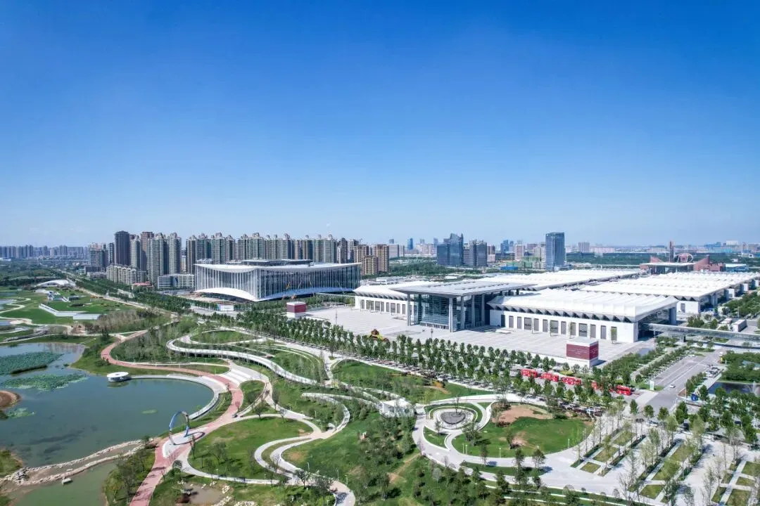 截止目前,整个规划区域的主次支路网体系已经成型,东三环主线高架建设完成,展览中心一期、国际会议中心(西区)、圆桌会议中心(东区)及园林酒店均按照“国家级、国际化”的标准进行规划建设。周边景观配套如会展丝路公园、圆桌会议中心周边景观也已建成。目前,展览二期在建,配套地块的深化设计正在进行。