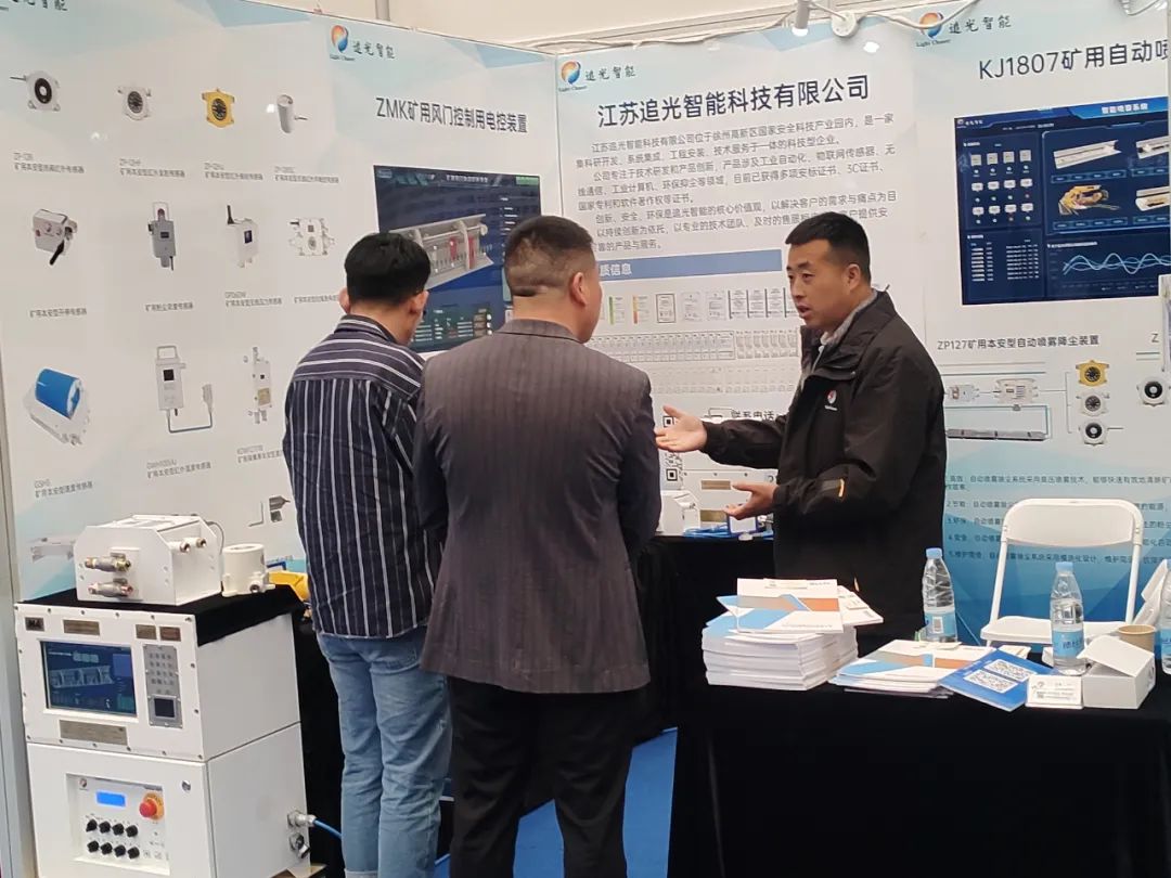 此次展会中,江苏追光智能科技有限公司参展带来了智能化矿用智能喷雾系统和矿用风门智能控制系统的产品,吸引了广大到访者的驻足围观,纷纷询问产品的性能特点和智能化优势,公司的参会代表人员详细介绍各产品特点,耐心解答问题,获得了到访者的认可。