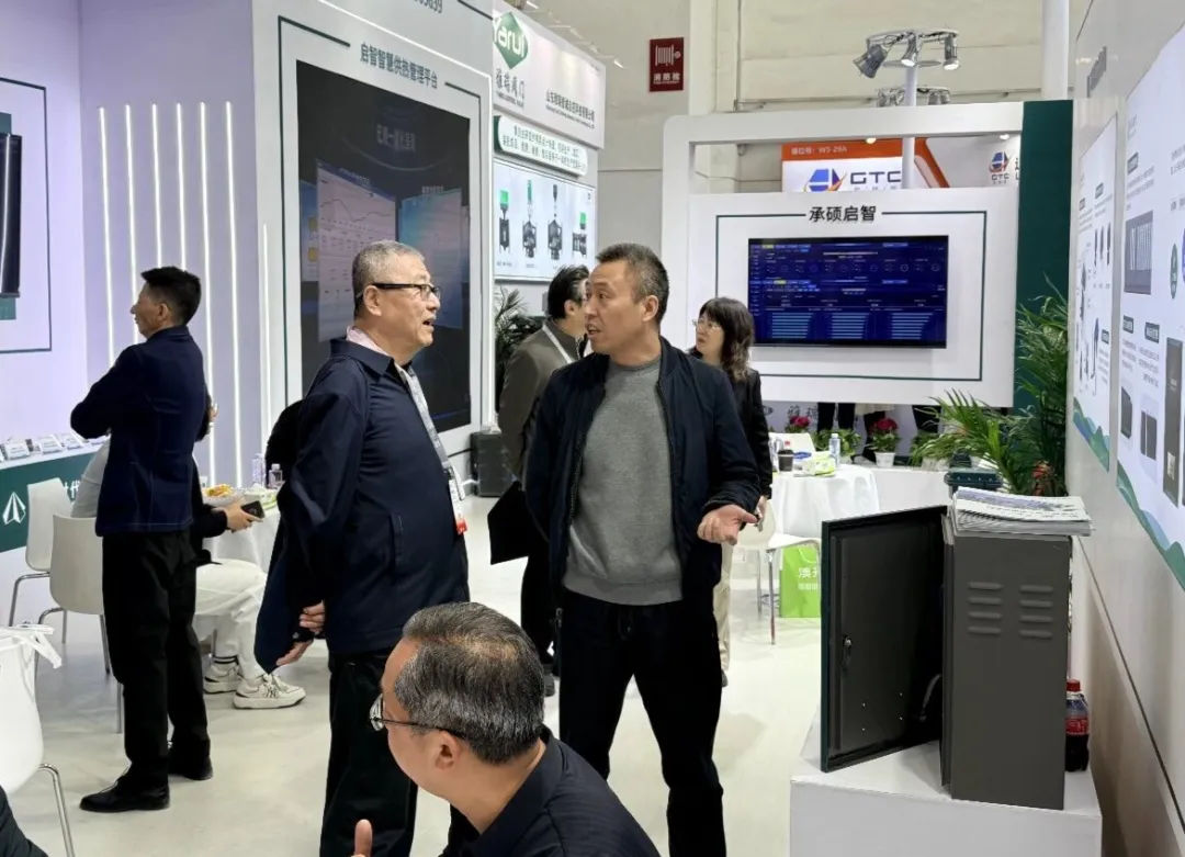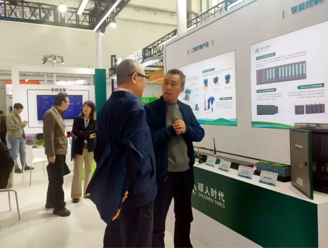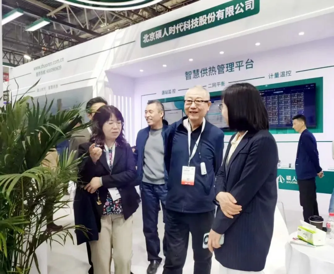 北京市供热协会秘书长丁琦等领导到访展位,戴斌文董事长围绕硕人时代的技术创新理念、产品迭代升级情况以及在智慧供热领域的实践成果进行详细介绍,双方就行业痛点、技术突破、产业赋能等话题展开深入探讨,凝聚发展共识。