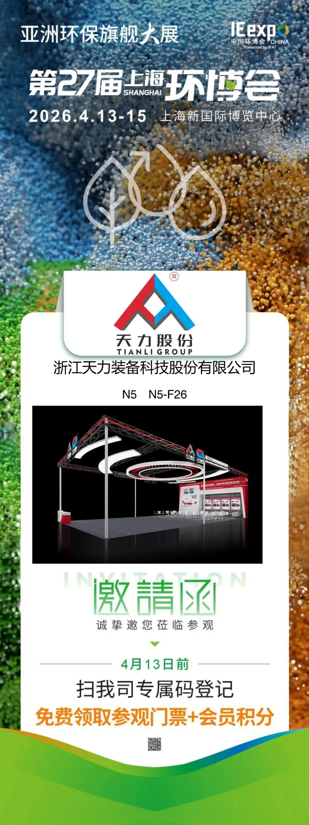 展会邀请 |天力股份将于4月13-15日亮相第27届上海环博会!